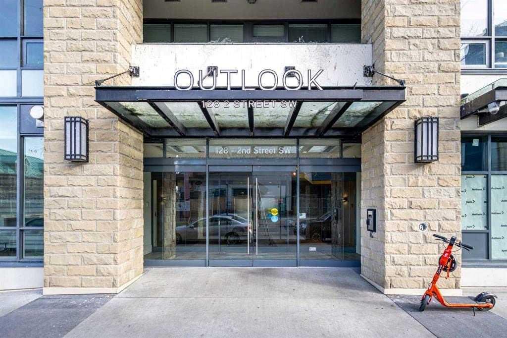 North-facing beautiful one bedroom plus DEN unit featuring beautiful river views ENJOY TRENDY LIFESTYLE – THE OUTLOOK @ WATERFRONT IN EAU CLAIRE – Just Steps to Prince’s Island Park & Bow River! Well-Designed Downtown Condo with handsome AMENITIES i & Urban Convenience including Best Shopping, Lounge & Restaurants, theatre and a short walk to +15 to the LRT! This executive 1 BR + DEN+ INSUITE STORAGE comes with a Great Layout with Wide Plank Laminate Floors throughout! Gourmet kitchen with Quartz Counter Tops, Soft-Close Cabinetry. Built-in Blomberg FRIDGE, Gas Cooktop, Electric oven. 9 Ft Flat Ceilings throughout with Nearly Floor to Ceiling Windows. The oversized den can be used as a bedroom, spacious balcony with BBQ outlet. Building Amenities includes Concierge Service, Car Wash, Bike Storage, Fitness Centre with Yoga Studio, Ample Cardio machines, and Hot Tub! Steam Rooms and shower in Men’s and Women’s locker Rooms, a Lounge with high-speed internet, pool table, kitchenette, fireplace and TV and a private Theatre for use with private bookings. One heated under parking + One Storage is included. Currently tenant-occupied with rent of $2,000/month