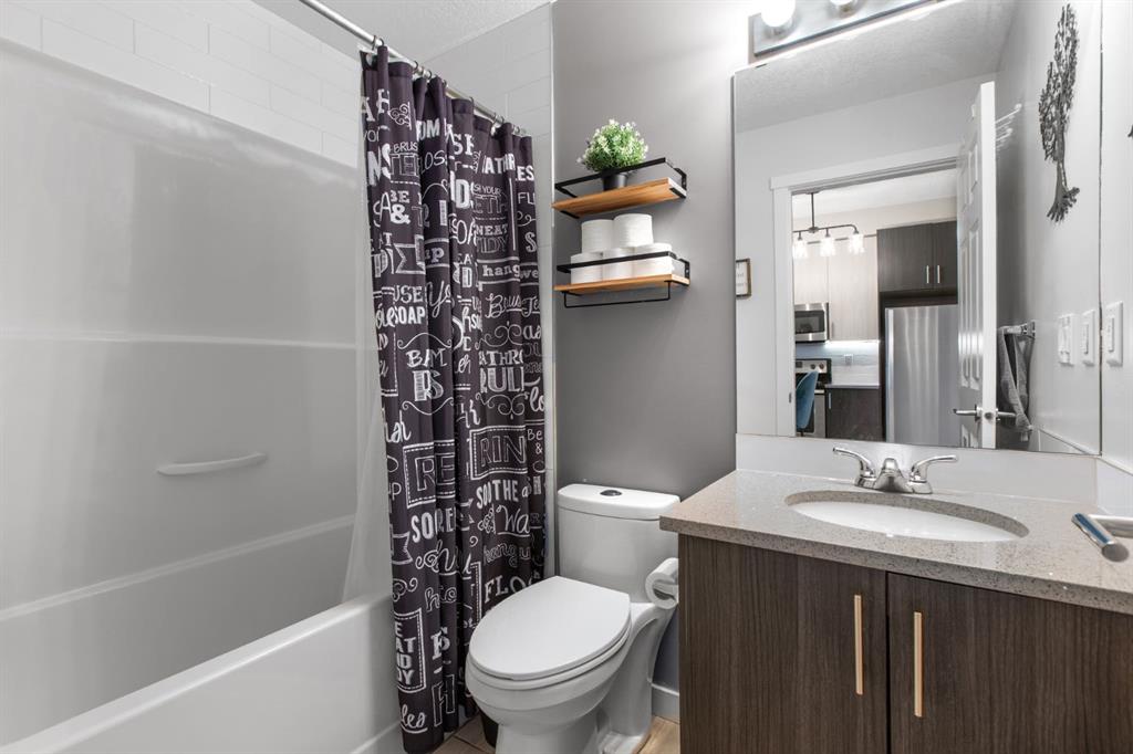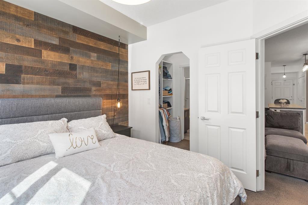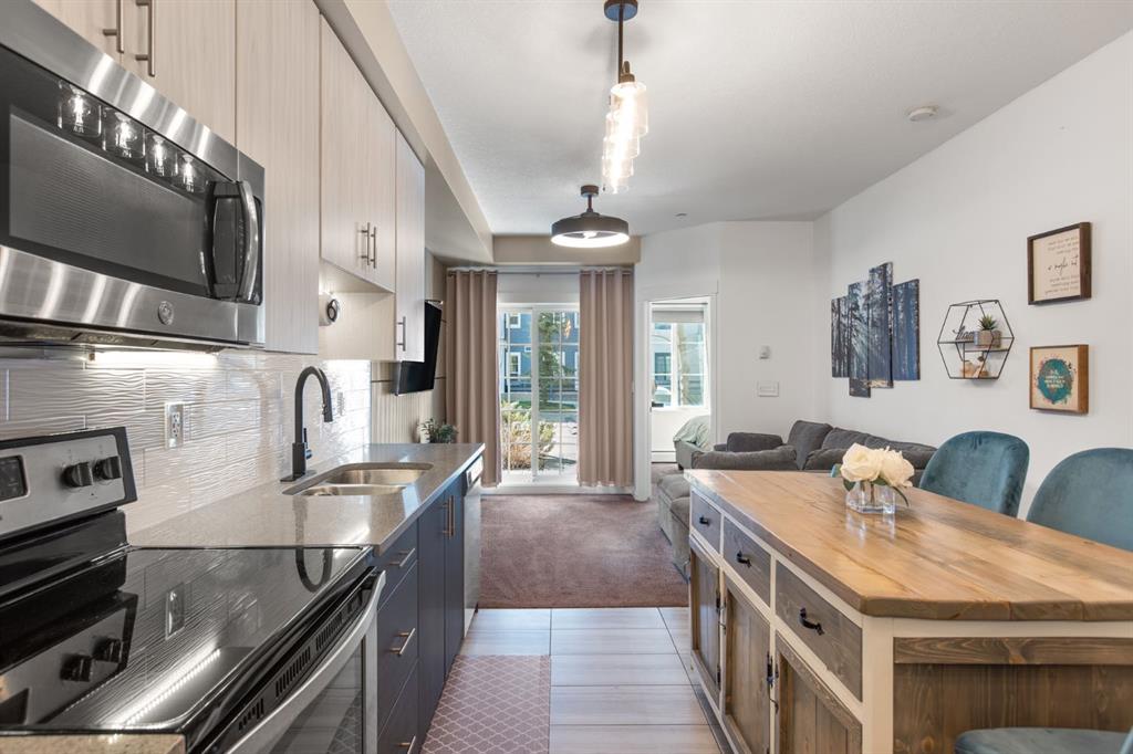 SUPERB VALUE for this immaculate 2 bedroom, 2 bathroom home! Move in ready and waiting for you! Conveniently located on the main floor with a bright and functional floor plan, boasting 9 FT CEILINGS and West facing windows. The kitchen features GRANITE COUNTERTOPS, stainless steel appliances, under cabinet lighting and a kitchen island. Spacious primary bedroom has a large walk-thru closet and 3-pc ensuite with walk-in shower. The second bedroom is perfectly suited for guests or a home office. Enjoy the sunshine from your sunny, WEST FACING PATIO with BBQ gas line. And don’t forget about the UNDERGROUND TITLED PARKING and additional STORAGE LOCKER. Other bonuses include: NEWER WASHER & DRYER and reasonable condo fees that include heat and water. This is a PET FRIENDLY and well managed complex, right across the road from a kids play park. Sturdy brick and Hardie board construction. Easy access to schools, tons of shopping and Stoney Trail. You will love living in Legacy, surrounded by beautiful walking paths and a 300 acre environmental reserve. This property has everything you want, for the price you need! Check out our 3D TOUR and book a showing before it’s too late.