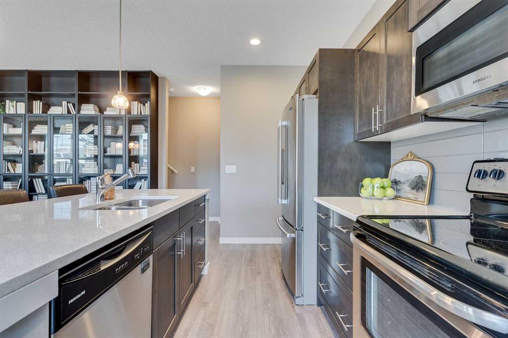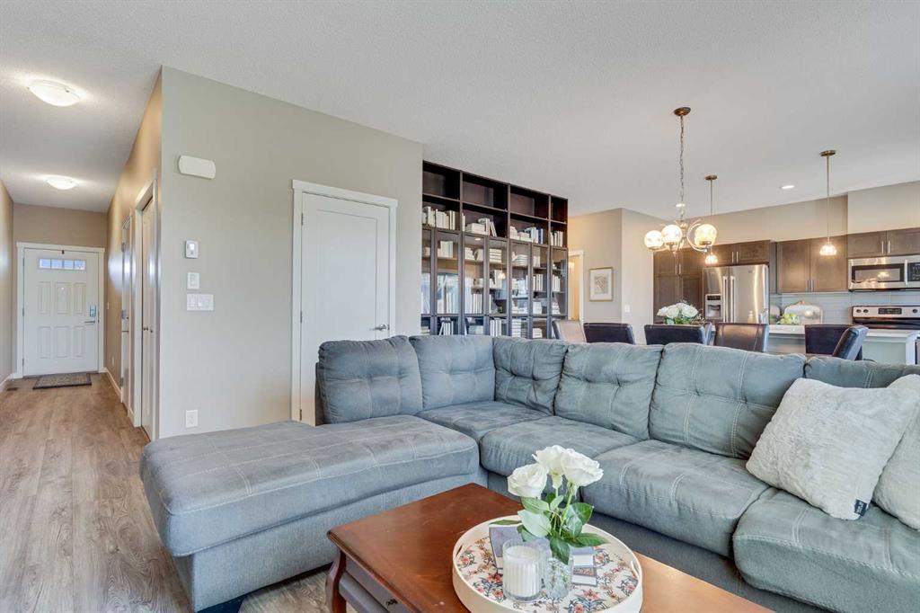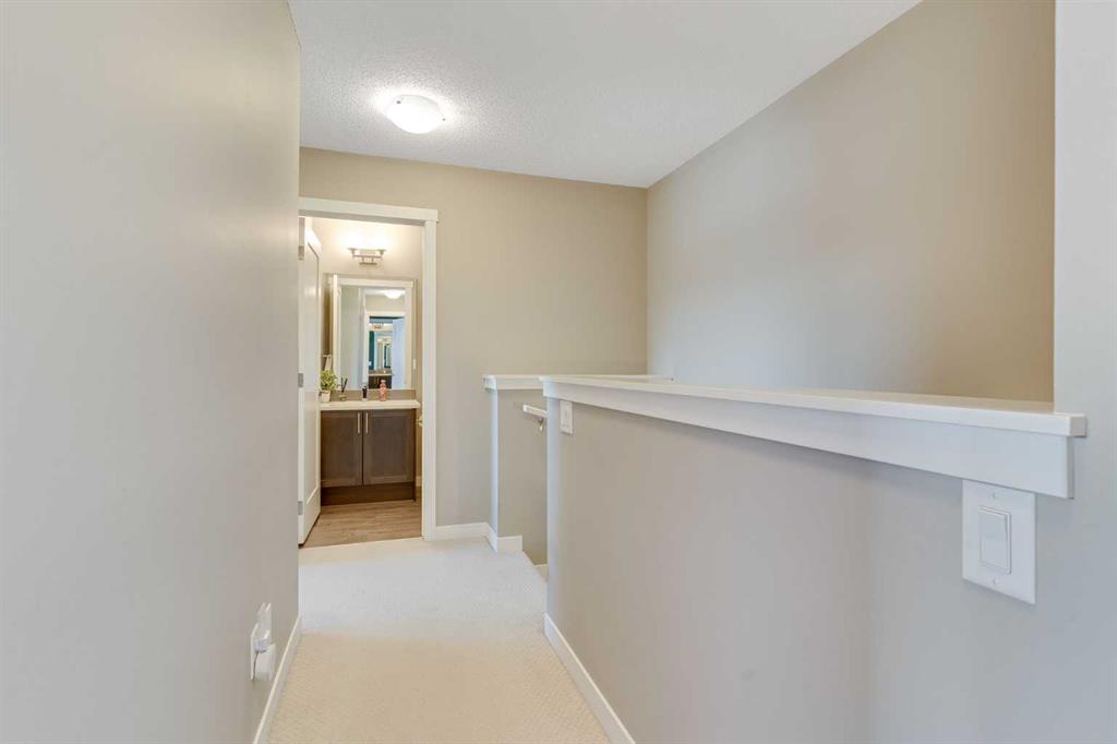 OPEN HOUSES: Saturday, November 8, 1:00-3:00pm & Sunday, November 9 from 12:00-2:00pm. This charming townhouse combines style, comfort & functionality with a layout designed for everyday living. Step into a bright, open-concept main floor where a spacious living room with a custom built-in library wall flows seamlessly into the dining area. The kitchen is both beautiful & practical, featuring rich walnut-stained cabinetry, quartz countertops, a breakfast bar & easy-care vinyl plank flooring, with sliding patio doors leading to your private outdoor space, perfect for summer BBQs or evening relaxation. A convenient half bath completes the main level. Upstairs, discover three well-appointed bedrooms, including a primary suite with its own walk-in closet & private ensuite, while the additional bedrooms share a full bath. The fully finished basement extends the living space with a cozy family room, fourth bedroom, full bathroom & laundry area, making it ideal for growing families or guests alike. Complete with a single attached garage plus parking on the driveway for one more vehicle, and backing onto a lush green space with trees, and benches that invite you to slow down & enjoy nature right outside your door. The vibrant community of Nolan Hill is known for its scenic ravines, parks, playgrounds & miles of walking paths. With easy access to shopping centres, schools, restaurants & major roadways, this property offers the perfect blend of comfort, convenience & community living.