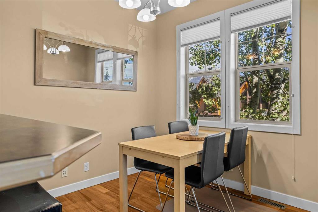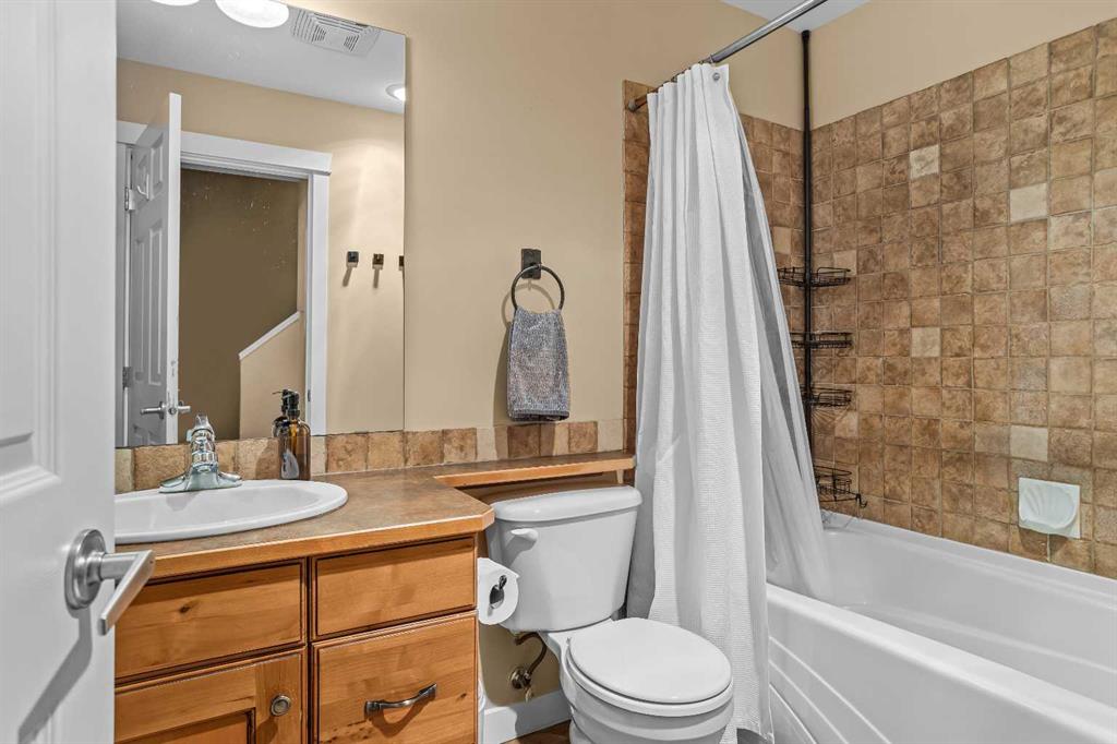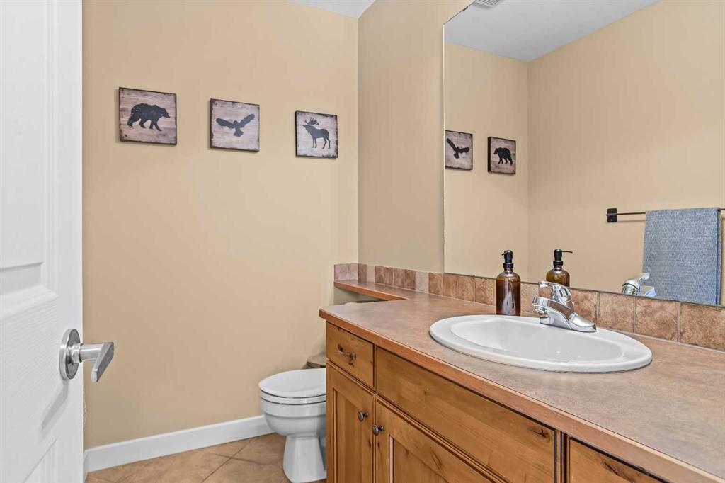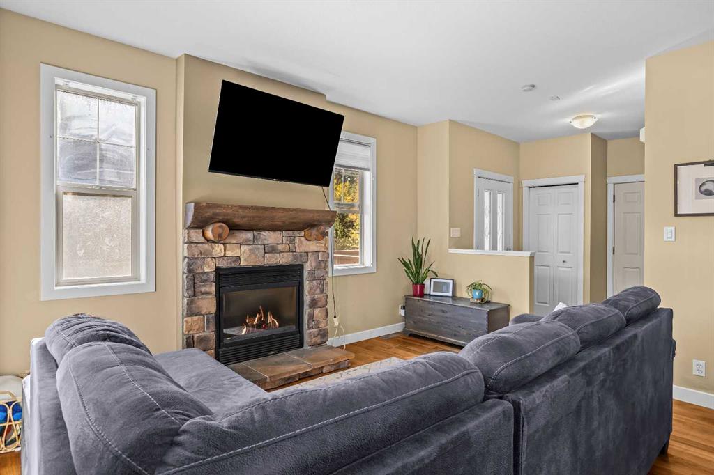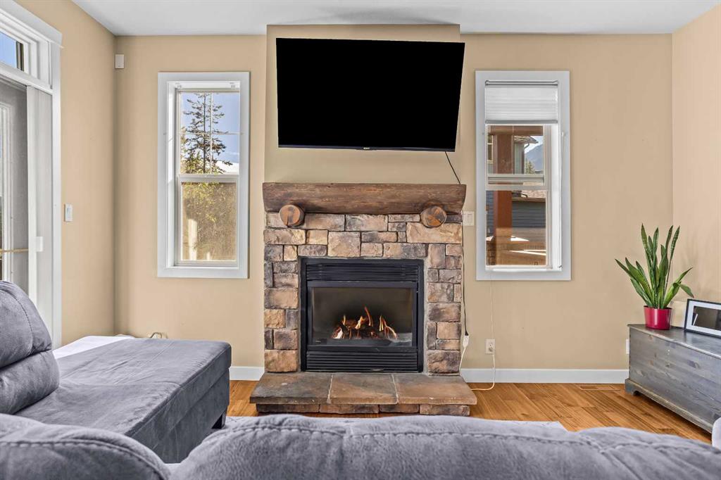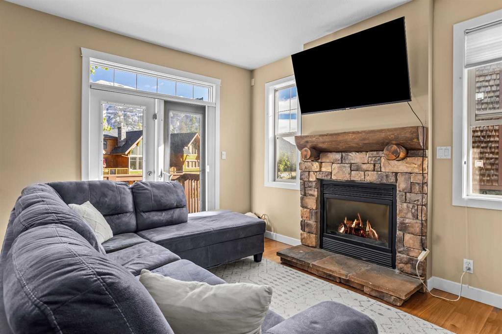 Beautiful corner townhouse in the highly sought-after Collier’s Ridge community, offering over 1,000 sq. ft. of bright, open living space and spectacular mountain views from every window. This two-level home welcomes you with an inviting open-concept kitchen, dining, and living area featuring 9’ ceilings, large windows that flood the space with natural light, and a cozy gas fireplace accented by a charming log mantle. Step out from the dining area onto the expansive deck to enjoy unobstructed panoramic views — perfect for morning coffee or evening relaxation. The entry level also includes a convenient powder room and a spacious single attached garage. The walkout lower level features two generous bedrooms with heated floors, a 4-piece bath, laundry area, and direct patio access from the primary suite. Located in a well-managed complex just steps from scenic hiking and biking trails and moments from Stewart Creek Golf Course, this home truly embodies the Canmore mountain lifestyle.