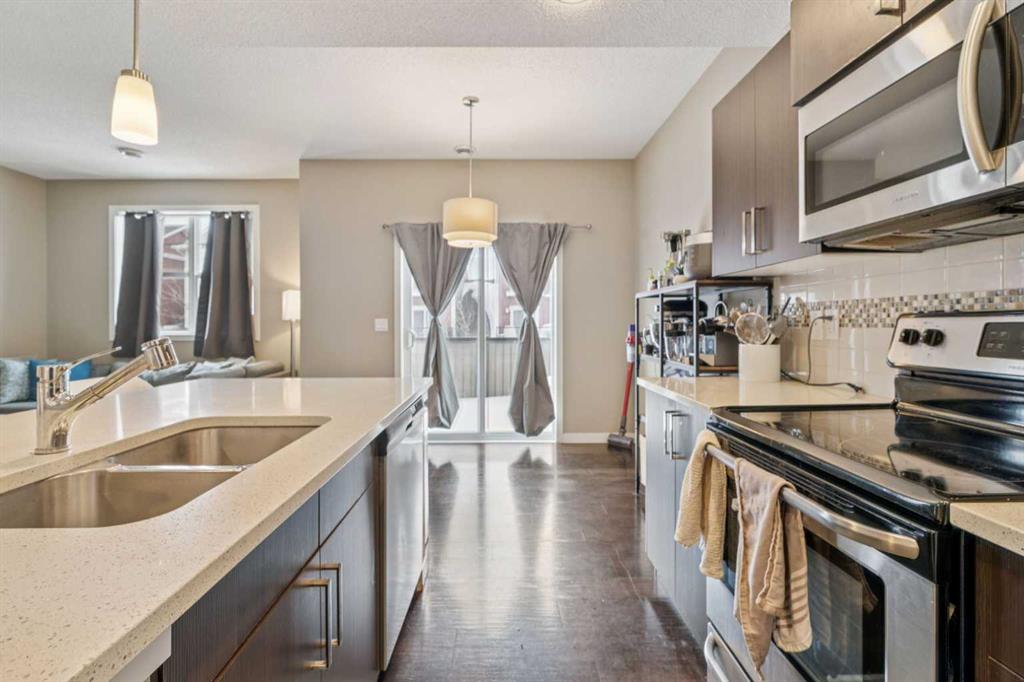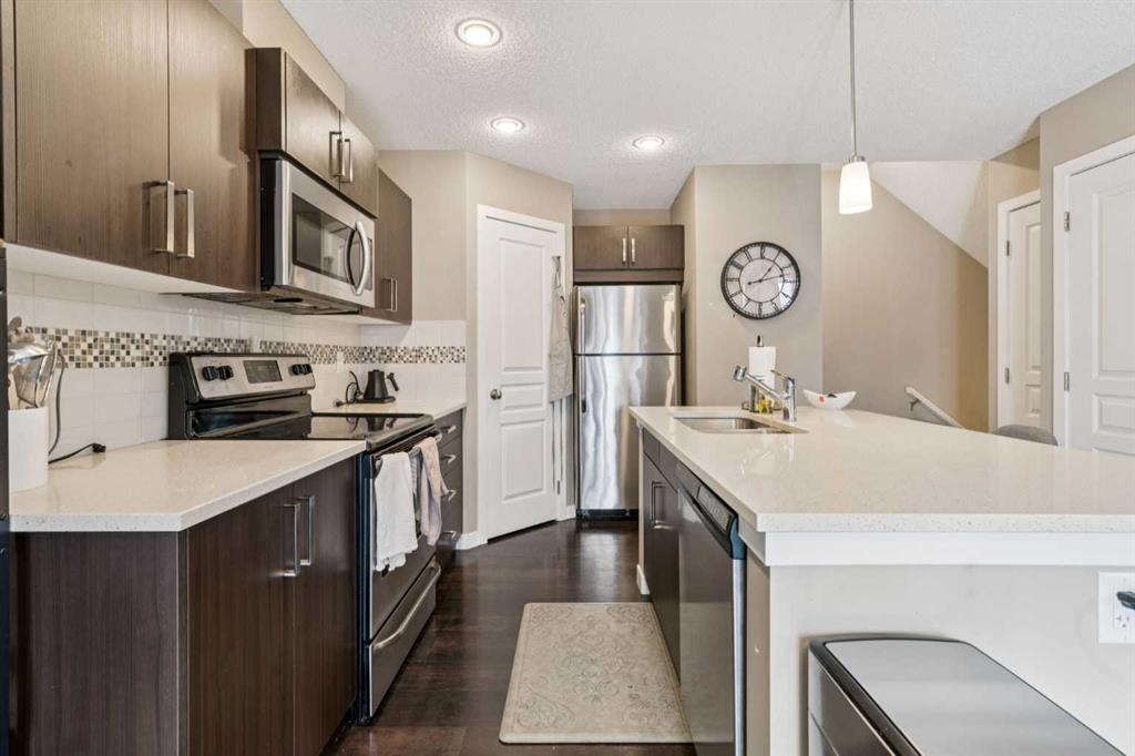 Welcome to Sonoma at Sage Hill. Discover the perfect blend of style, comfort, and convenience in this beautifully maintained 3-storey townhome. Offering over 1,200 sq. ft. of thoughtfully designed living space. Featuring 2 bedrooms, a single attached garage, with a full driveway for a second vehicle. This home is ideal for first-time buyers, young professionals, families, or investors. Tucked into a quiet interior location within the complex, you’ll enjoy reduced road noise and added privacy. The bright, open concept main floor features wide plank flooring, oversized windows, and a seamless flow between the living, dining, and kitchen areas. The modern kitchen is equipped with quartz countertops, stainless steel appliances, tile backsplash, a corner pantry, and ample prep space. Perfect for everyday living and entertaining. A convenient 2-piece bathroom to complete this level. Upstairs, you’ll find two generously sized bedrooms, including a spacious primary suite with a walk-through closet and direct access to a stylish 4-piece bathroom. Enjoy your southwest-facing balcony, ideal for BBQs, morning coffee, or relaxing in the evening sun. Low condo fees help keep ownership affordable, and the complex allows pets. Located just minutes from Sage Hill Crossing, Creekside Shopping Centre, Beacon Hill, and major retailers including Costco, Walmart, T&T Supermarket. With quick access to Stoney Trail and Shaganappi Trail, commuting anywhere in the city is effortless. Walking paths, parks, and playgrounds are woven throughout this thriving community. Move-in ready and offering exceptional value in NW Calgary. Book to view today!