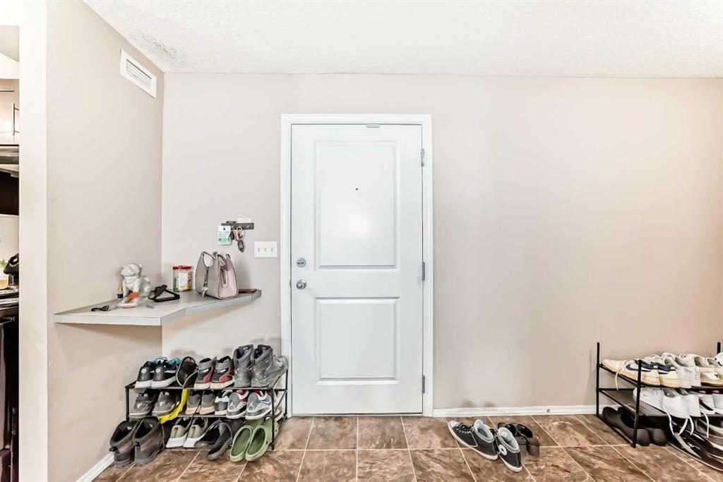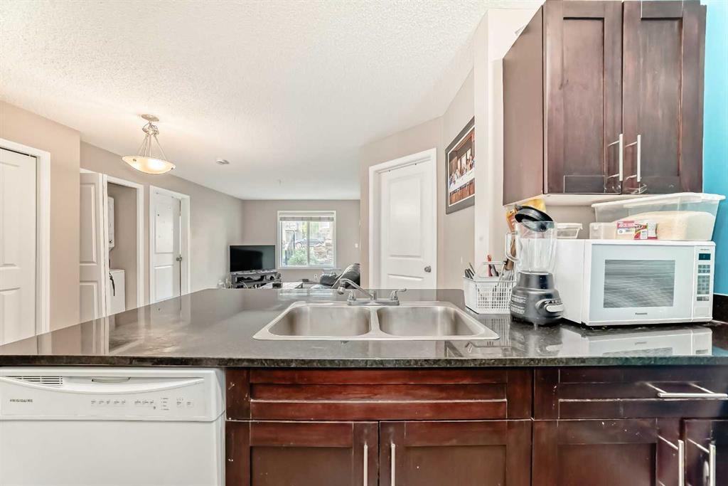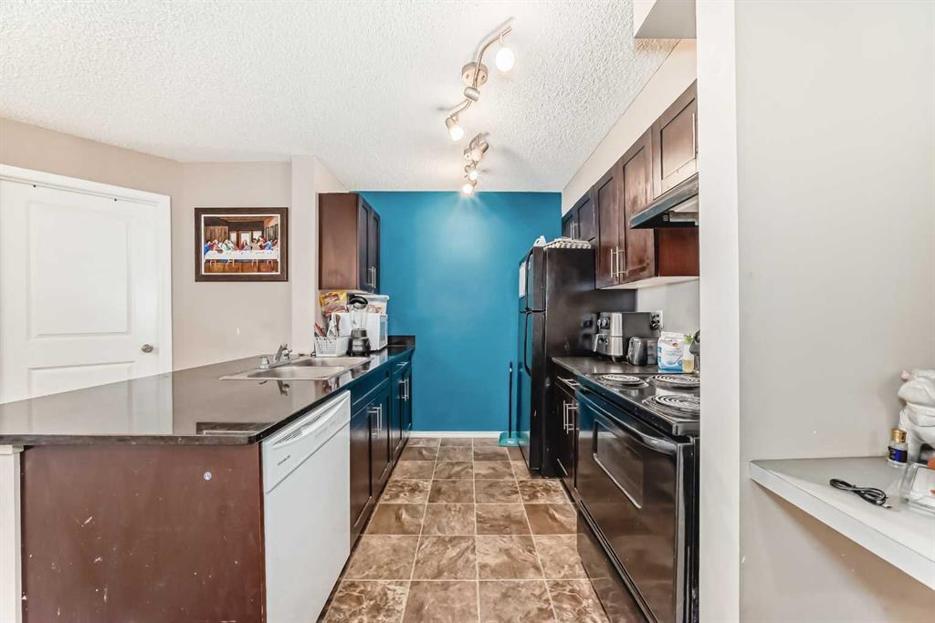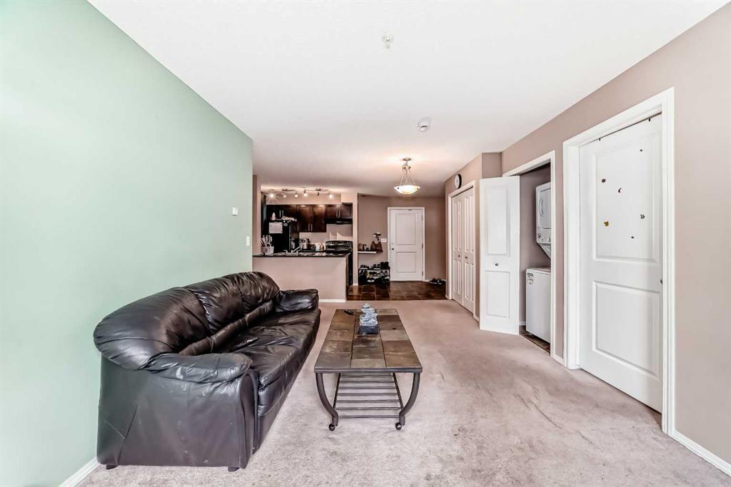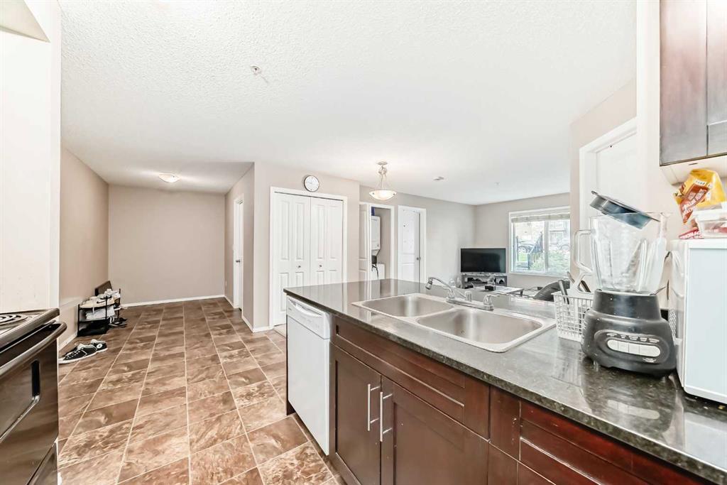Ground floor cozy 2 bedroom plus Den and 2 baths is nestled in the family-friendly neighborhood of Kincora. Situated right smack in the midst of all kinds of amenities – transit routes, shopping centers, schools, recreational facilities, walk and bike paths. This is urban living at its best!. From the spacious entrance you are ushered into the open floor concept of living room and dining area. To the left of the entrance is good size Den and the laundry room. Then there is the 4pce bathroom and a good size bedroom. To the right as you enter is good size kitchen with plenty of cabinets and counter top space, also the primary/master bedroom complete with walk in closet and 4pce ensuite. The porch off the living room has good view of the complex and neighborhood for those summer days hang out. Condo fees cover both heat and water, offering additional convenience. With easy access to Stoney Trail, Shaganappi Trail, and Beddington Trail, you’ll enjoy a hassle-free commute and excellent connectivity to everything you need.
