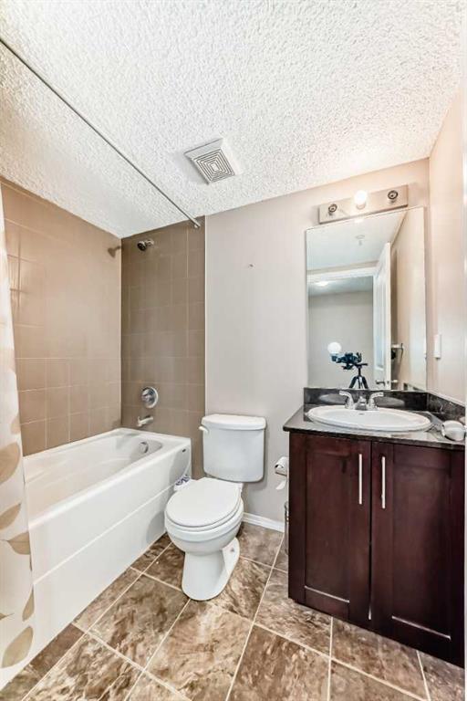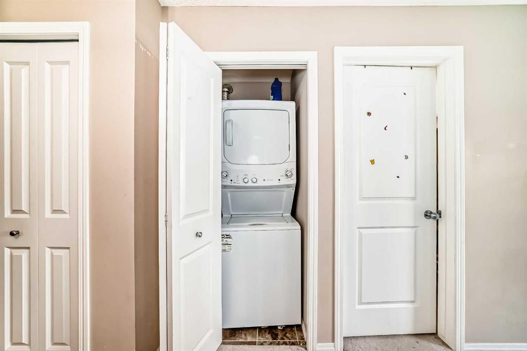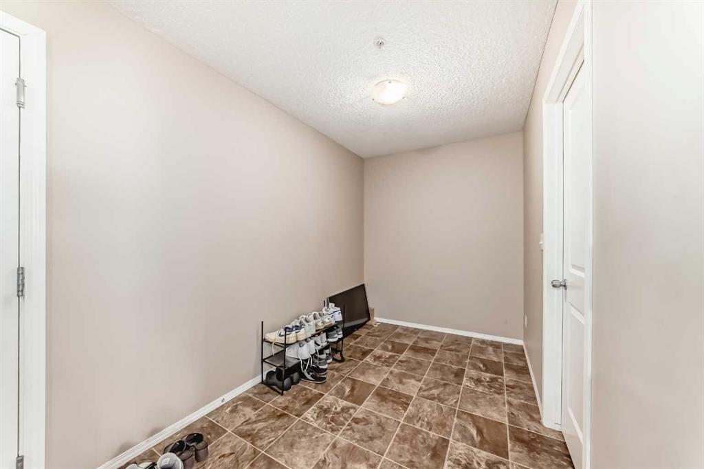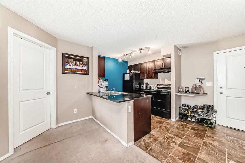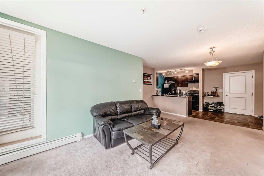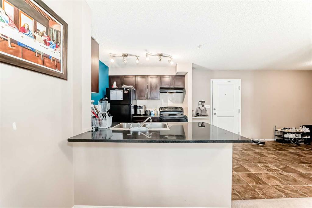 Ground floor cozy 2 bedroom plus Den and 2 baths is nestled in the family-friendly neighborhood of Kincora. Situated right smack in the midst of all kinds of amenities – transit routes, shopping centers, schools, recreational facilities, walk and bike paths. This is urban living at its best!. From the spacious entrance you are ushered into the open floor concept of living room and dining area. To the left of the entrance is good size Den and the laundry room. Then there is the 4pce bathroom and a good size bedroom. To the right as you enter is good size kitchen with plenty of cabinets and counter top space, also the primary/master bedroom complete with walk in closet and 4pce ensuite. The porch off the living room has good view of the complex and neighborhood for those summer days hang out. Condo fees cover both heat and water, offering additional convenience. With easy access to Stoney Trail, Shaganappi Trail, and Beddington Trail, you’ll enjoy a hassle-free commute and excellent connectivity to everything you need.