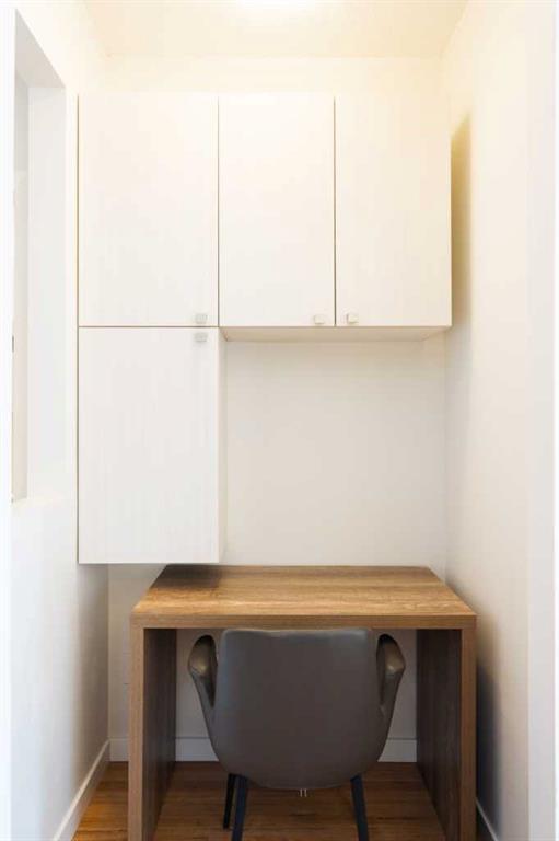Inside, high ceilings and oversized windows fill the open living space with natural light, while the modern kitchen with breakfast bar and generous storage blends practicality with social charm. The spacious bedroom and walk-in closet bring everyday luxury, and in-suite laundry with extra storage keeps life simple.
