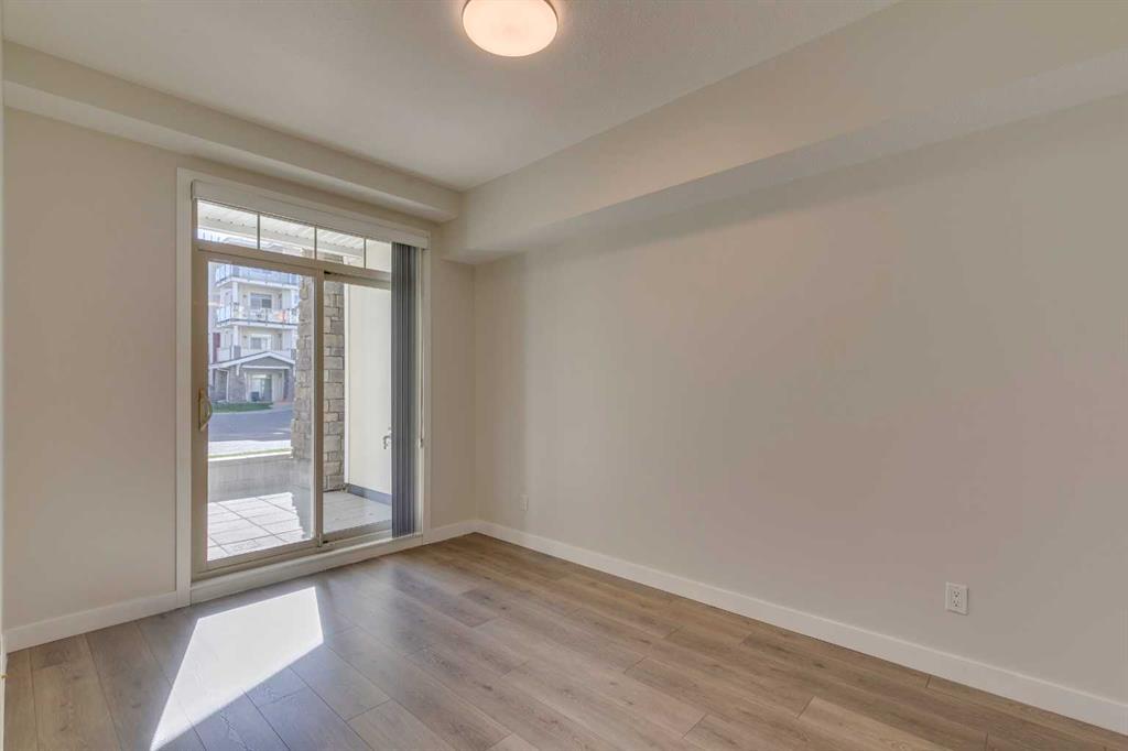 Tremendous opportunity and affordability for a first time buyer or investor…Welcome to Stonecroft at Auburn Bay—where comfort meets convenience in one of Calgary’s most desirable lake communities. This recently modernized and updated ground-floor, one-bedroom condo offers a bright and open layout with 9-foot ceilings and durable laminate flooring throughout. The kitchen features sleek quartz countertops, modern stainless steel appliances including a brand-new, never-used stove, and seamless flow into the living room with electric fireplace, where large windows and a patio door fill the space with natural light. Step outside to your oversized patio, offering the rare bonus of private outdoor access right from your home, with the added benefit of a built-in gas line; your barbecue dreams just came true! The bedroom includes sliding doors to the patio, a walkthrough closet with built-in shelving, and direct access to the full bathroom for an ensuite experience. You’ll love the thoughtful touches like in-floor radiant heat, an in-suite washer and dryer (less than a year old), and the convenience of a separate den that’s perfect for a home office or extra storage. This unit also includes a heated, secure underground parking stall and an assigned storage locker for added peace of mind.