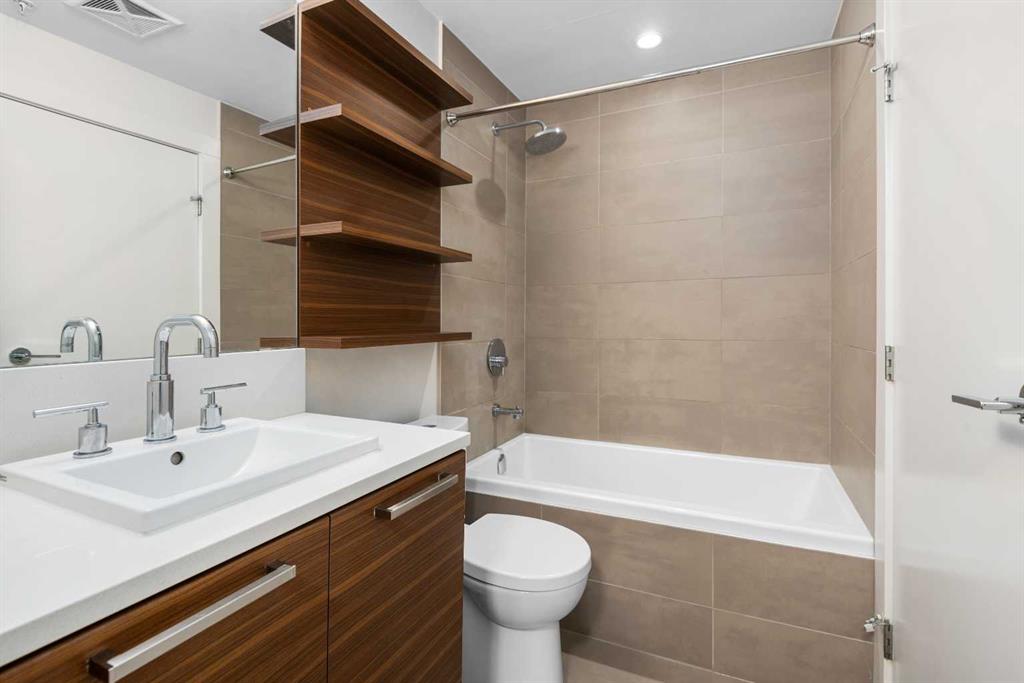 This ground floor unit with a fantastic layout includes a must have DEN, unique upgrades, titled parking and convenient storage. The original owners had the builder add a built in pantry/cabinet at end of the kitchen as well as addition shelving in ensuite. The very convenient ground floor access means no elevators and visitors can come directly through the private patio. The unit comes with one title parking stall in the secured underground parking where you will find secure storage for your convenience rather than hauling items through the elevators and hallways. A previous occupant also had security set up on patio for comfort and peace of mind. The bedroom features a walkthrough closet leading to the well appointed 4 piece bath with some custom shelving. With the DEN. the open floor plan, well appointed kitchen, full size washer/dryer and the direct access for your guests this is an amazing opportunity. Bridgeland is known to be one of the best inner city communities in Calgary, This unit sits in one of the best locations within Bridgeland being far enough from Memorial to minimize traffic noise and close enough for an easy walk to the LRT, Zoo, river paths, downtown and several coffee shops and restaurants and shops. Vacant and available for possession at your convenience.