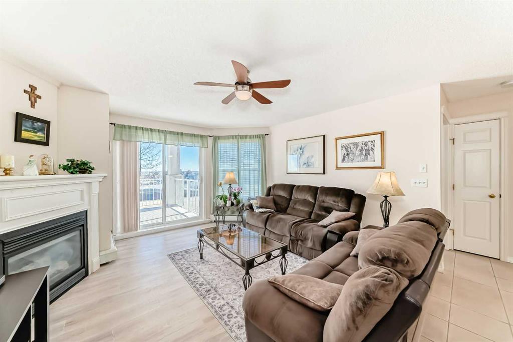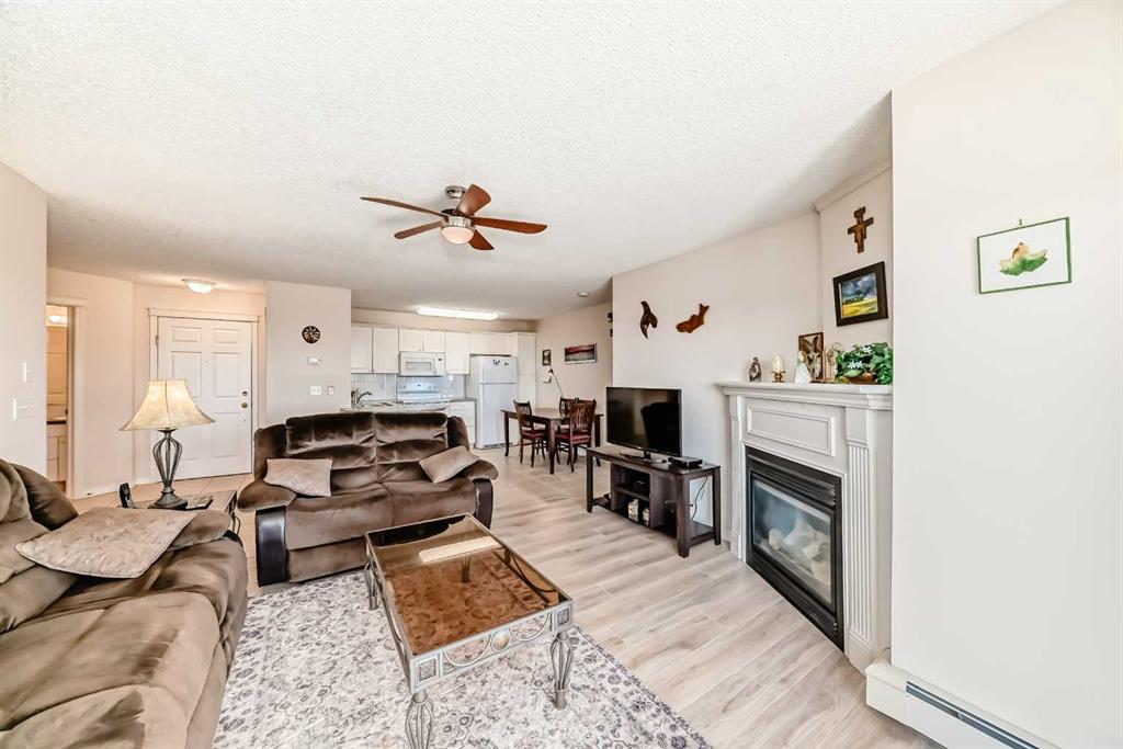 Location, location, location! This spectacular main floor unit is exceptionally well maintained and backs directly onto park, giving added privacy. The spacious layout shows beautifully, featuring an open-concept design connecting the living room, dining area, and kitchen. The bright kitchen offers white cabinetry, newer white appliances in excellent condition, and a rounded eating bar. There is also plenty of space for a full-sized dining table. The seller has recently installed new vinyl plank flooring throughout, adding a fresh and modern touch. A cozy gas fireplace highlights the living room.