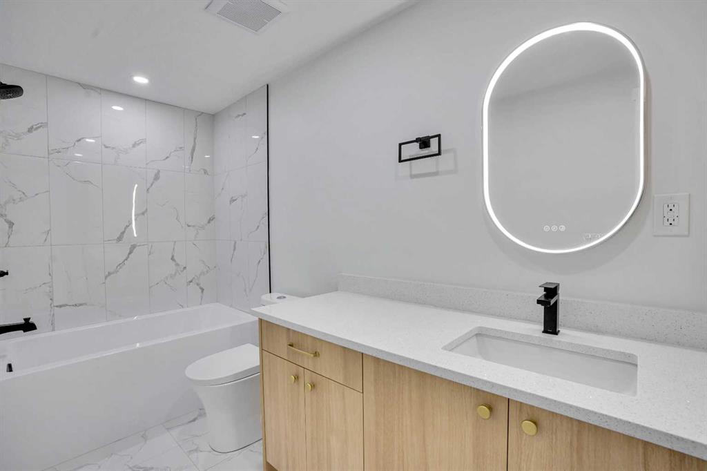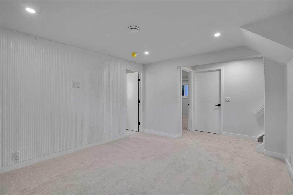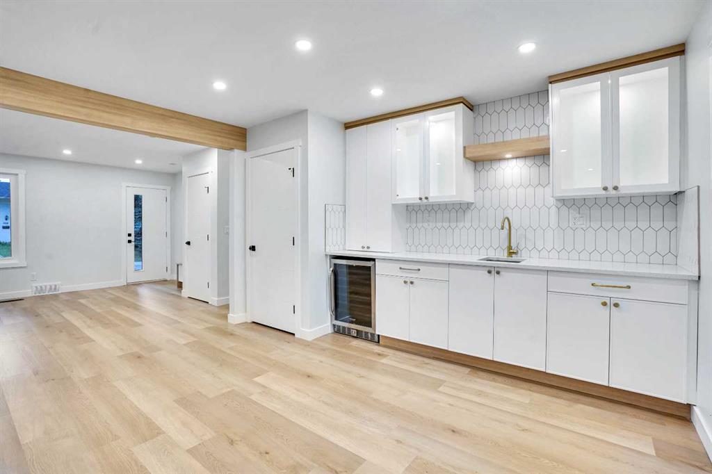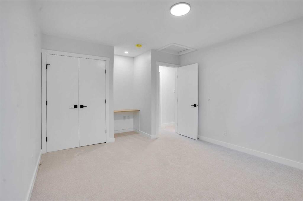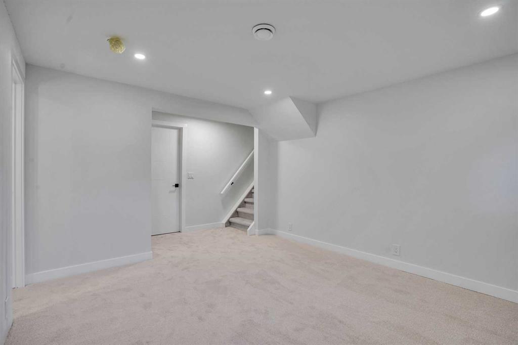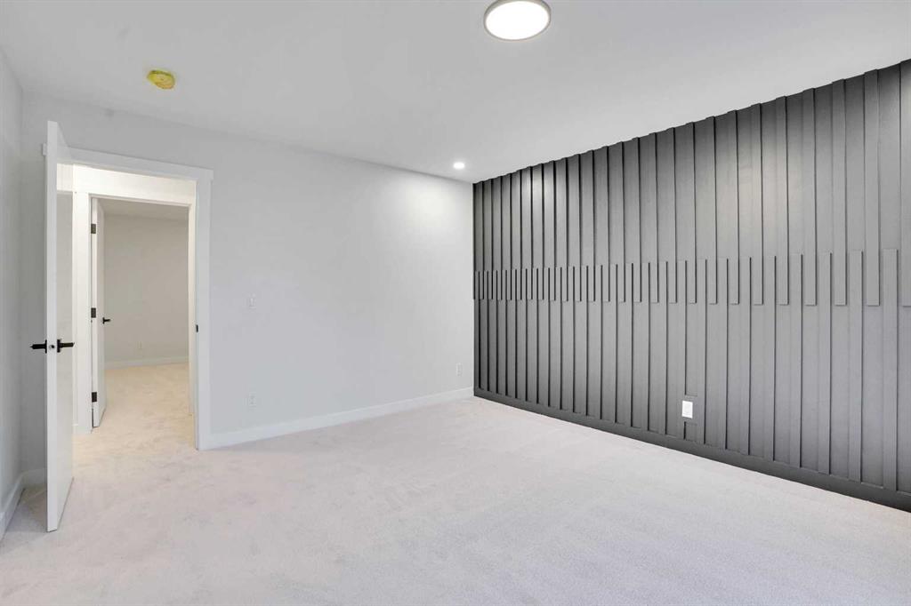 The main floor features an open concept layout with a chef-inspired kitchen complete with a striking waterfall island, brand new appliances, and custom cabinetry. The dining and living areas are bright and inviting, anchored by a sleek electric fireplace, while a custom bar on the main level makes this space perfect for entertaining. Each of the three bathrooms has been completely redesigned with high-end finishes including the spa-like ensuite that provides a private retreat for the homeowner.