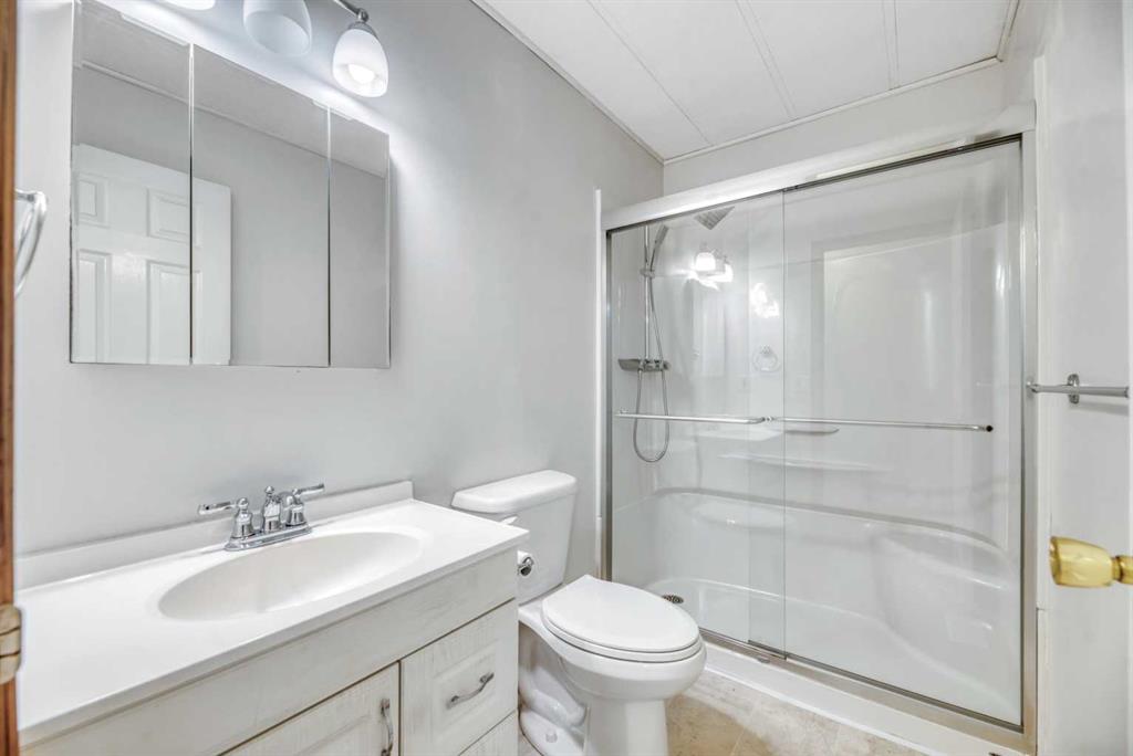 With three bedrooms, the layout offers flexibility for families, guests, or a home office depending on your needs. The main bathroom features a spacious glass shower, and a convenient two-piece bathroom is located just off the back entrance alongside a stackable washer and dryer, adding practicality to daily living.