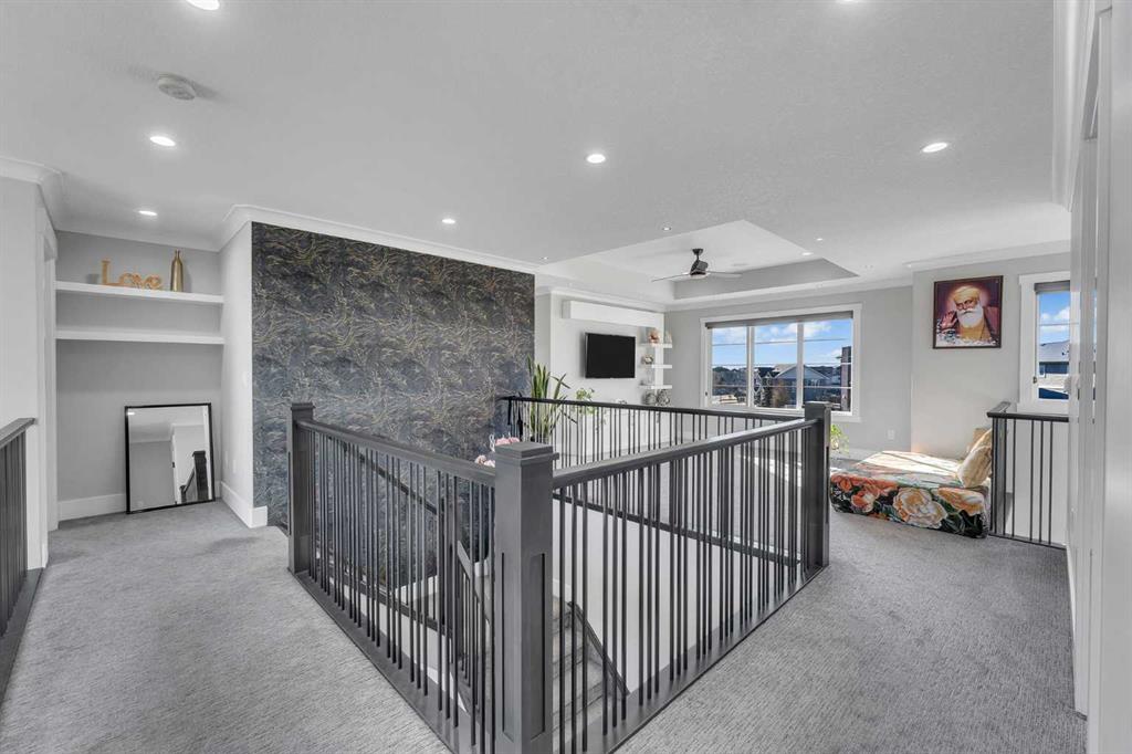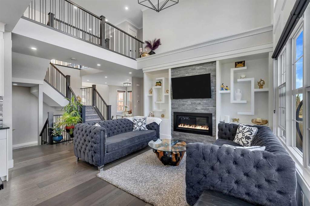 ON THE BIGGEST LOT IN AREA (OVER 0.27 ACRES)!! TRIPLE ATTACHED GARAGE!! MASSIVE DRIVEWAY TO PARK YOUR RV & TOYS!! NO NEIGHBOURS BEHIND!! MAIN FLOOR BEDROOM & FULL BATH!! 2900+ SQFT OF LIVING SPACE!! 5 BEDROOMS & 4 BATHS!! OPEN TO BELOW!! Welcome to this beautifully designed home in the highly sought-after community of KINNIBURGH! As you step inside, you’re greeted by a bright living area open to below, flowing seamlessly into the family room with a cozy fireplace and large windows that fill the home with natural light. The chef-inspired kitchen features stainless steel appliances, built-in features, a large island, and a spice kitchen — perfect for all your culinary needs! A main floor bedroom with a full bath offers convenience and flexibility. Upstairs, you’ll find 4 BEDROOMS and 3 FULL BATHS, including a luxurious 5PC ENSUITE BATH and walk-in closet. 2 BEDROOMS share a Jack & Jill 5PC BATH, while the fourth BEDROOM has access to another FULL BATH. The open den area on this level is ideal as a home office or second family room. This home comes complete with a TRIPLE ATTACHED GARAGE and a spacious driveway for extra parking. Located close to Chestermere Lake, schools, parks, and shopping, this is the perfect family home that blends comfort, luxury, and convenience. PERFECT FAMILY HOME IN KINNIBURGH — MOVE-IN READY AND WAITING FOR YOU!!