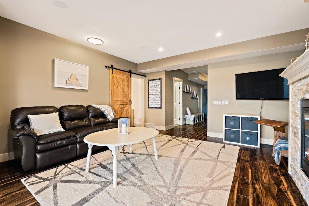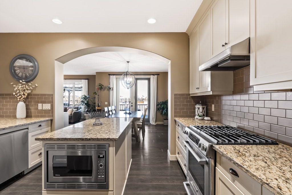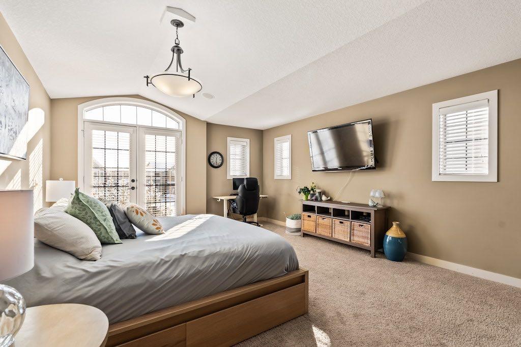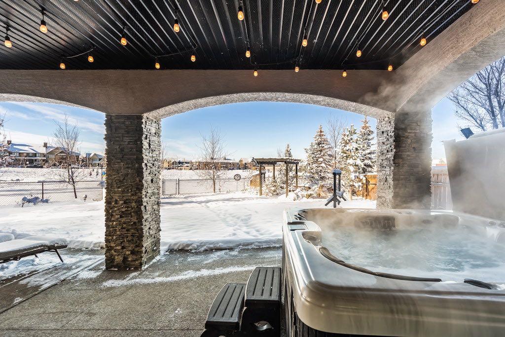 A rare offering awaits at 111 Marquis Cove SE. Homes of this caliber seldom come to market in one of Calgary’s most exclusive and highly coveted lake communities—Mahogany. Perfectly positioned at the end of a quiet cul-de-sac on an expansive pie-shaped lot, this exceptional residence backs onto an expansive greenspace and Divine Mercy Elementary School. With over 3,600 sq. ft. of beautifully developed living space and a fully finished walk-out basement, this is a home that harmonizes luxury, comfort, and functionality. Extensively upgraded for elevated living. Thoughtful upgrades are showcased throughout, beginning with a custom built-in bench in the front entry, 9-ft ceilings, 8-ft doors and central air conditioning. A built-in speaker system spans all three floors, while the oversized double garage is designed to accommodate a full-size truck—ideal for families on the go. A bright, open main floor designed for connection. The gourmet kitchen is a true centerpiece, featuring abundant cabinetry, granite countertops, subway tile backsplash, stainless steel appliances including a gas range, a central island, and a counter height breakfast bar. The spacious living room is anchored by a striking feature fireplace with custom built-ins, while the dining area—enhanced with beautiful wainscotting—opens onto a full-width deck, perfect for summer barbecues and evening relaxation. A luxurious upper-level retreat. Upstairs, the primary suite is a sanctuary unto itself, offering a vaulted ceiling, a charming Juliet balcony, a spa-inspired ensuite with a soaker tub, a spacious walk-in shower, private water closet, dual vanities, extensive cabinetry, and a large walk-in closet. Three additional generously sized bedrooms, a full bathroom, and a luxury laundry room with abundant cabinetry, laundry sink and more wainscotting complete the upper level. Exceptional walk-out basement. The fully developed lower level enhances day-to-day living with a relaxing sauna, a full bathroom featuring a vintage vanity, a delightful custom children’s play area under the stairs, and a dry bar. A fifth bedroom, a large family room with a second fireplace, and sliding doors to the covered lower patio create an inviting extension of living space that flows seamlessly into the backyard. Indulge in year-round relaxation in the premium hot tub—complete with LED mood lighting, soothing waterfall features, and multiple hydrotherapy jets—an elevated spa experience thoughtfully included with the home. The professionally designed outdoor space showcases underground sprinklers, stone landscaping, and a charming fire-pit area with pergola. Lifestyle and location combined. From the backyard, enjoy quick access to the Wetlands pathway system. A short 5 minute walk brings you to Mahogany’s private beach access, while the shops, restaurants, and year-round amenities of Mahogany Village Market and Westman Village are just moments away. Welcome to the next level of exquisite living.
