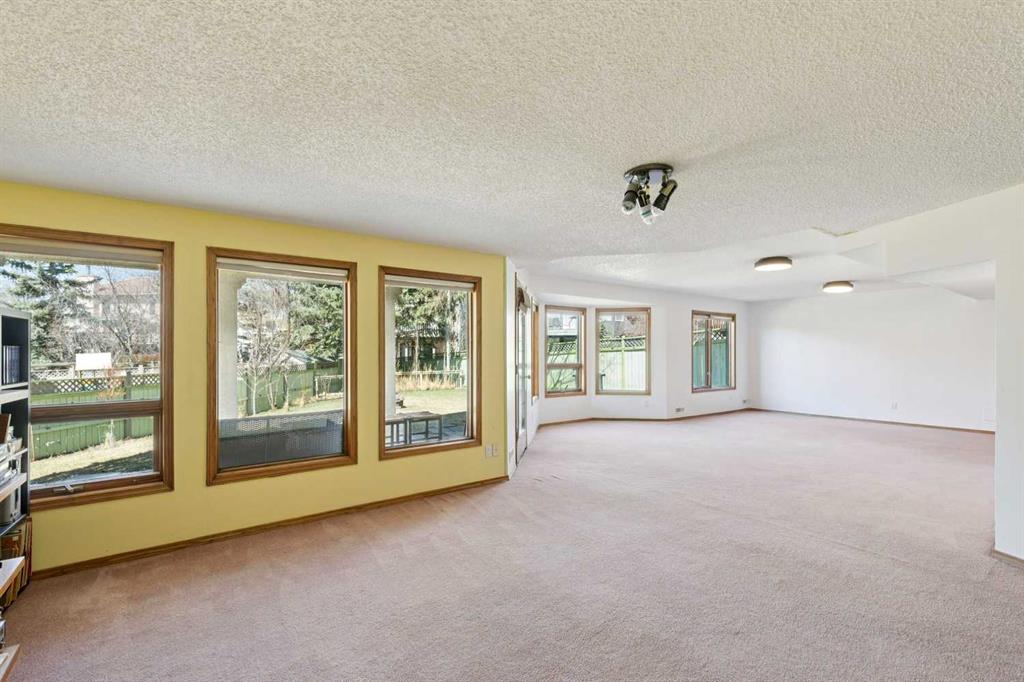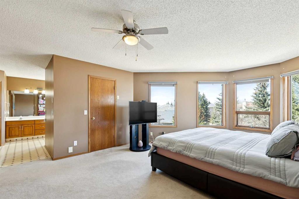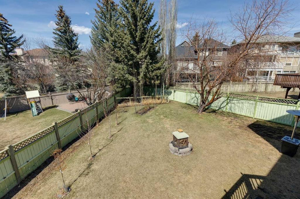 Located in the prestigious estate area of Scenic Acres, this 2,444 sq. ft. two-storey home offers 5 bedrooms (3+2) and a fully developed walkout basement on a massive 8,730 sq. ft. pie-shaped lot. Enjoy the convenience of a triple garage (double plus tandem) and the beauty of a quiet court location with a sunny west-facing, park-like backyard—fully fenced with underground sprinklers, multiple trees, and lush gardens. Inside, vaulted ceilings and hardwood floors enhance the traditional layout, featuring a bright living and dining room, and a spacious oak kitchen with stainless steel appliances. Off the kitchen, step onto a wrap-around deck or relax in the main-floor family room with a cozy fireplace. Enjoy partial mountain views and even the northern lights on clear nights. Upstairs, the primary suite includes a walk-in closet and 5-piece ensuite with jetted tub, complemented by two additional bedrooms and a 4-piece main bath. The walkout basement expands the living space with a large recreation area, two more bedrooms, and another full bathroom—perfect for guests, teens, or extended family. Recent updates include complete Poly-B removal, two newer furnaces, and two hot water tanks. Ideally situated near parks, pathways, schools, shopping, and the LRT, with easy access to Crowchild and Stoney Trail—this home offers the perfect blend of comfort, functionality, and location.