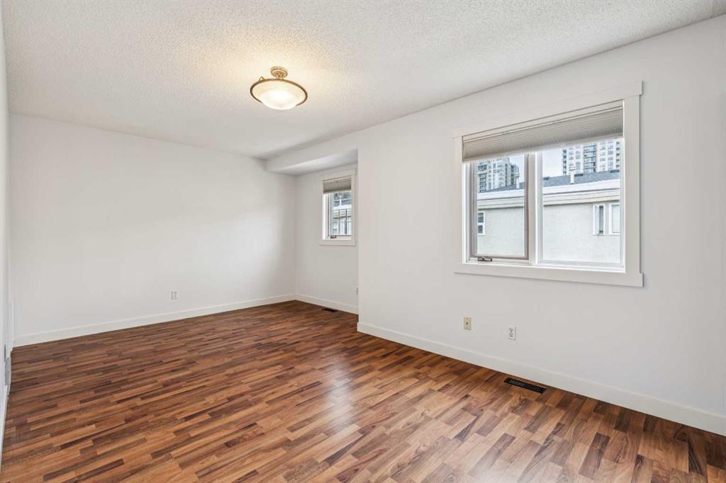 Discover a sophisticated blend of quiet community and urban pulse in the heart of the Beltline. This bright townhouse offers a level of privacy and space rarely found in the city center, nestled within a boutique 28-unit enclave defined by a peaceful interior courtyard and a history of meticulous management. Because of the superior quality and a strong sense of community, homes in this project are seldom available, often seeing only one or two listings per year. The main level is designed for both comfort and connection, where natural hardwood floors lead you into a light-filled living area centered around a classic wood-burning fireplace with marble detailing. The kitchen balances style and utility with granite countertops, matching stainless steel appliances, and ample cabinetry, flowing seamlessly into a dining area scaled for hosting groups of all sizes. Refined details like high-end bottom-up blinds and central air conditioning ensure the home remains a comfortable, private retreat throughout the changing seasons. The upper floor serves as a dedicated sanctuary, featuring two oversized bedrooms that offer generous space for relaxation. The ensuite bathroom offers everything you need with dual sinks and a large soaker tub, while the large closet offers all the space you need. To finish this level, the highly functional laundry room is placed exactly where it’s needed most—directly adjacent to the bedrooms. The lower level expands the home’s footprint with a versatile flex space, ideal for a quiet home office, a private gym, or a hobby room. Uniquely for the inner city, this property includes an attached double under-drive garage, perfect for our changing weather. This provides a level of convenience, security, and storage capacity that is a true luxury for the area. Located directly across from the greenery of Connaught Park and the historic St. Stephen’s Anglican Church, the setting feels remarkably residential despite being steps from the energy of 17th Avenue. Residents enjoy immediate access to over 400 local shops, boutiques, and world-class dining options, all while being within easy walking distance of the downtown core and local off-leash areas. This property represents an incredible opportunity for long-term value in one of Calgary’s most sought-after locations.