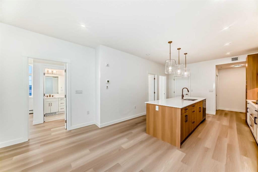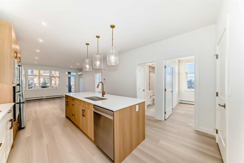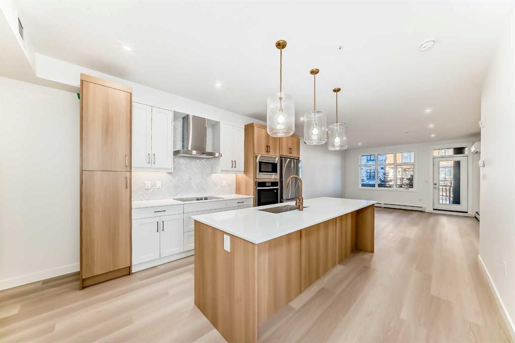 The Atwood 3 is one of award-winning Logel Homes’ most sought-after floor plans. This home features underground heated titled parking along with additional storage for added convenience. The well-designed layout offers two spacious bedrooms, including a primary bedroom with a full ensuite, as well as a second four-piece bathroom. The upgraded kitchen is highlighted by a central island with a breakfast bar, quartz countertops, and a full-height backsplash, and is equipped with a stainless-steel refrigerator, a built-in wall oven, a cooktop, and a microwave hood fan. The kitchen flows seamlessly into the dining area and a generously sized living room, which opens onto an oversized balcony—ideal for both everyday living and entertaining. Located in the desirable Sage Hill community, residents can enjoy scenic natural ravines, convenient access to shopping, and easy connections to major freeways for seamless travel throughout the city. Condo fees include heat, water, and sewer, as well as common-area maintenance, professional management, and contributions to the reserve fund. The purchase price includes GST and is backed by the Alberta New Home Warranty for added peace of mind.
