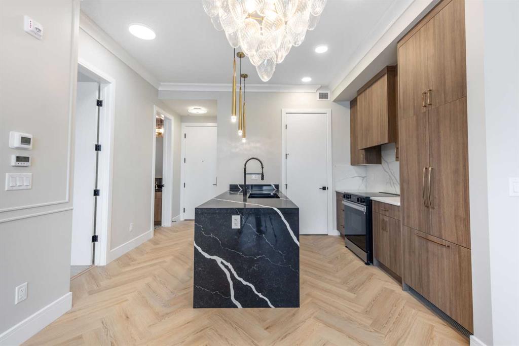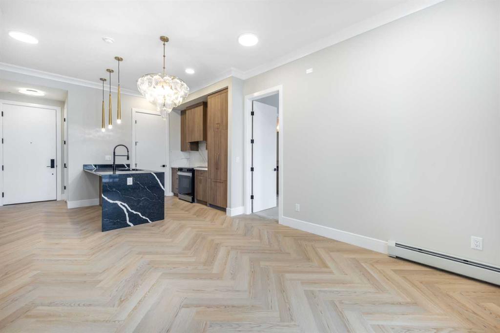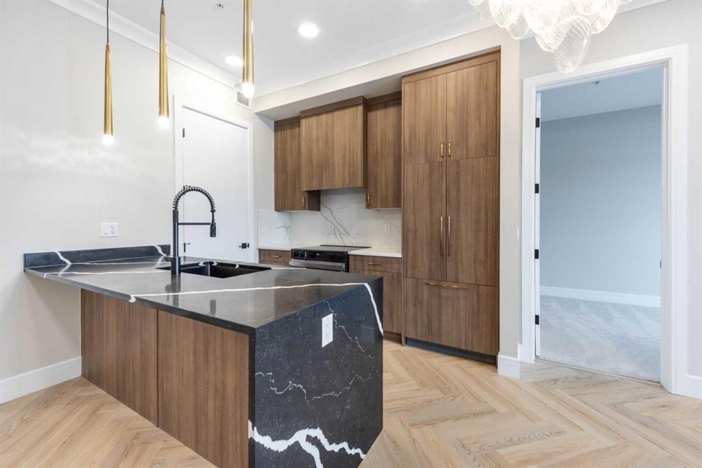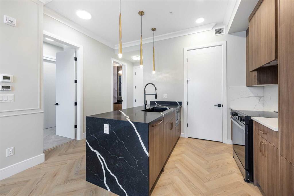 Welcome to The ORO, in Dean’s Landing that redefines modern living. This brand-new, never-occupied residence features 824 sq ft of thoughtfully designed space, boasting lofty 9′ to 10′ ceilings and an abundance of natural light from large windows. Step outside to your own private 248 sq ft balcony, perfect for hosting summer barbecues or enjoying a serene morning coffee. The chef-inspired kitchen offers ample countertops and a dedicated pantry, while the spacious bedroom accommodates a queen-size bed with ease, complemented by a large closet. Convenience is key with in-suite laundry facilities discreetly placed away from the living areas. The unit includes a titled parking stall, and the building is secured with heated underground parking, bicycle storage, and an electric charging stations. Nestled in Rohit’s Deans Landing., The unit is just moments away from shopping and dining in the award-winning University District, as well as the University of Calgary, Market Mall, Children’s and Foothills Hospitals. Enjoy nearby parks, scenic pathways, schools, and recreation centers, making this the perfect home for students, professionals, and families alike. Experience the ultimate blend of style, comfort, and convenience in University District —your new place to call home awaits! Book to view!