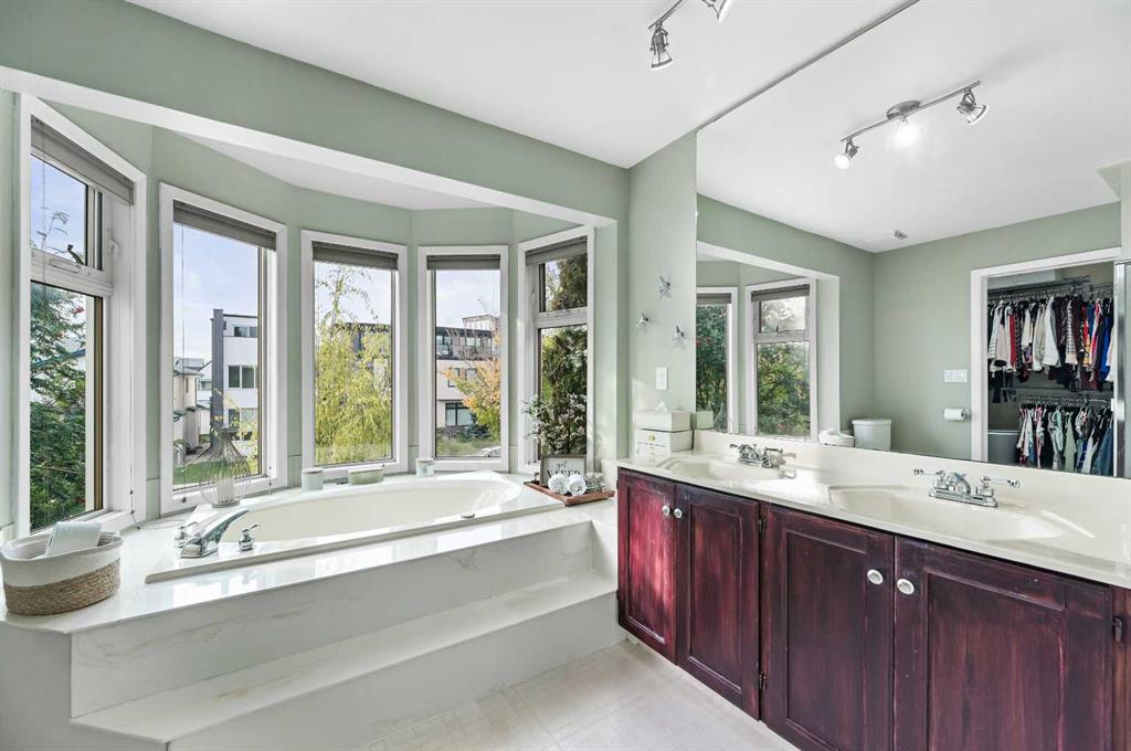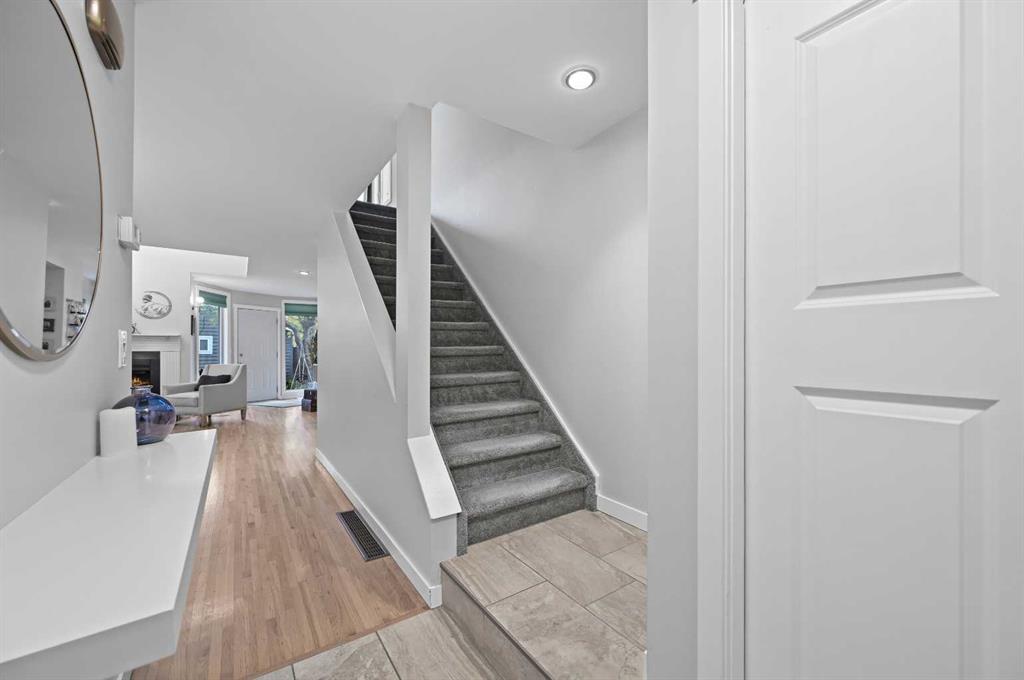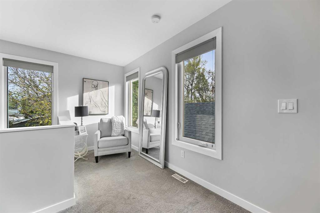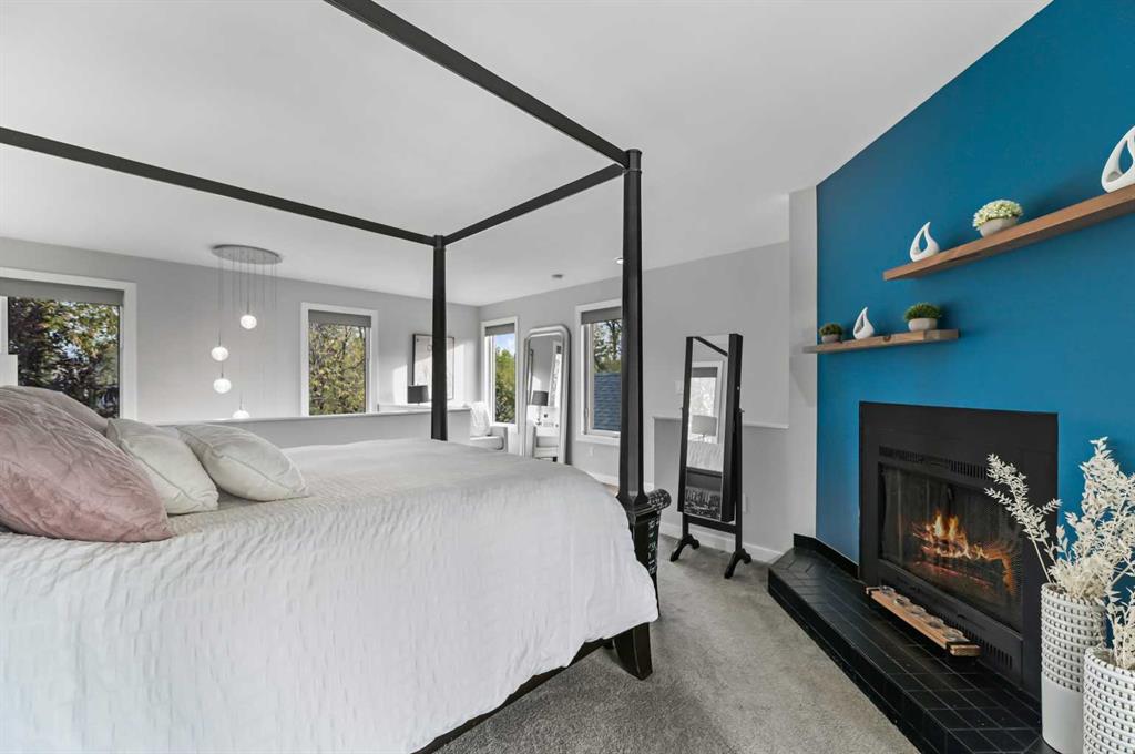 Capitol Hill Charmer with Modern Upgrades & Timeless Character. Welcome to one of Calgary’s most sought-after inner-city communities, Capitol Hill. This standout single-family home will capture your attention the moment you pull up, with its inviting curb appeal, tucked in behind some nice greenery. Inside, you’ll find warm hardwood floors and an open, airy layout that’s both stylish and functional. The fully renovated kitchen is a true showstopper, featuring quartz countertops, sleek stainless-steel appliances, and crisp tile flooring. It works great for entertaining as it opens up to the dining and living rooms. And that little sun filled nook is amazing for the morning breakfast, coffee, and reading your current events. The soaring open-to-below ceilings gives the opportunity to have a walled filled with windows and 1 of your 2 cozy gas assist wood-burning fireplaces in your living room that adds so much character and charm to the home. Upstairs, the loft-style primary retreat is your personal sanctuary, complete with a five-piece ensuite boasting double vanity sinks, a deep jetted tub, glass-enclosed shower, and a generous walk-in closet, as well as your second fireplace – relax until your heart is content! The fully finished basement expands your living space with a second bedroom, 3-piece bath, spacious rec room, and a stylish wine station, ideal for guests or movie nights. To round off the basement is a flex room you can use for what you deem fit and currently used for a natural beauty soap business. Outside, enjoy a private, beautifully landscaped backyard. The foliage in the spring and summer is something to be amazed by and quite the oasis to enjoy on your raised deck with gas bbq hookup. The oversized double garage is heated with functional storage in the rafters, work benches, and currently half of the space being used as a gym! Have peace of mind knowing you have an updated roof, triple-pane windows, hot water on demand system, and new AC unit. All of this, just minutes from downtown, SAIT, Confederation Park, schools, and a vibrant mix of restaurants and bars. Just a little bike ride or car ride down then hill and you are in the vibrant business district of Kensington. The nearest c-train at SAIT is only 750 meters away, what convenience! Or head north 450 meters and go relax in Confederation Park. And if you need to get out of the city, hop on 16th Ave to get you where you need to go. The central location can’t be overstated enough, what an amazing quality of life one can have here!