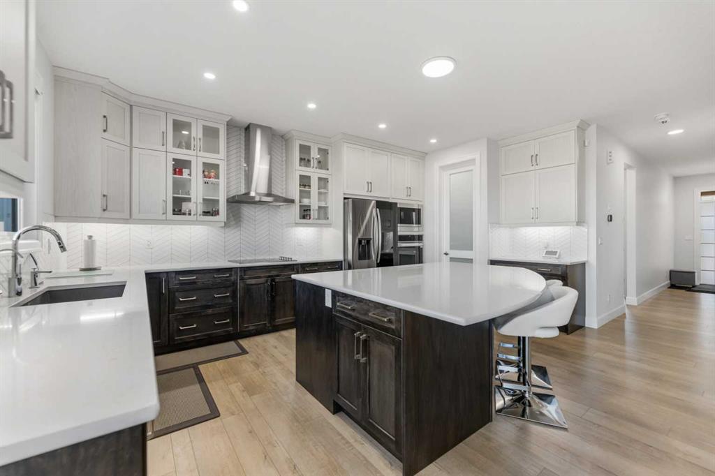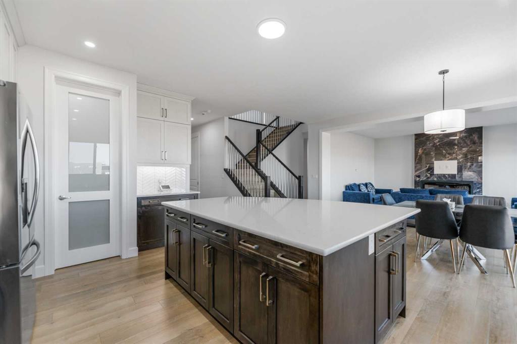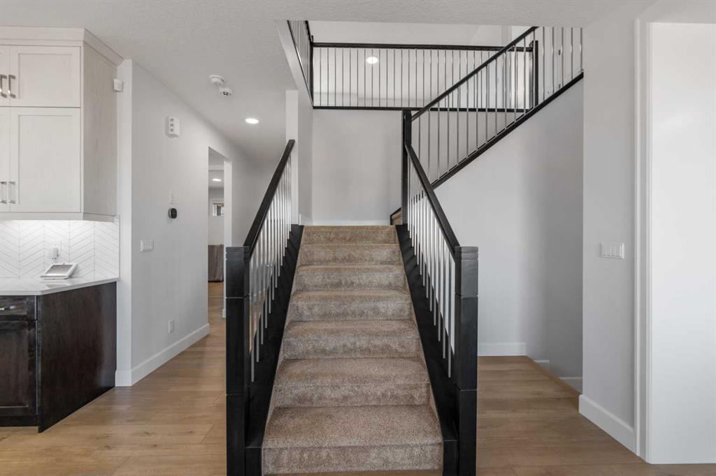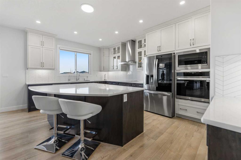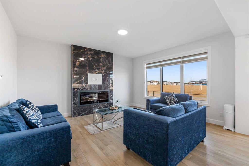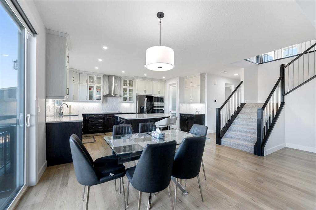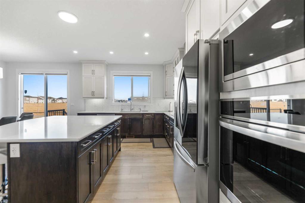 Welcome to 1116 Southwinds Green SW, located in the vibrant and family-oriented community of Southwinds in Airdrie. Backing directly onto green space, this beautifully designed 5-bedroom, 4-bathroom home including $100k of upgrades from the builder. Offers 2 primary bedrooms, the perfect balance of modern comfort, functional living, and an exceptional location. From the moment you arrive, the charming front porch creates inviting curb appeal and a welcoming first impression. Step inside to discover a thoughtfully designed open-concept main floor featuring luxury vinyl plank flooring, elegant tile accents, and plush carpeting throughout. Large windows flood the home with natural light, enhancing the bright and airy atmosphere. The spacious living room flows seamlessly into the contemporary kitchen, making it ideal for both everyday living and entertaining. The kitchen is well-appointed with sleek cabinetry, stainless steel appliances, built in microwave and oven a large central island with seating, and a walk-in pantry offering ample storage. The adjacent dining area overlooks the backyard and green space, creating a peaceful backdrop for family meals and gatherings. A highly desirable main-floor bedroom and full bathroom provide flexibility for guests, extended family, or multi-generational living. The main level also features a convenient mudroom, offering practical storage and organization for busy households. Upstairs, you’ll find a generous bonus/family room that provides additional living space perfect for a media area, playroom, or home office. The primary suite serves as a private retreat, complete with a spacious walk-in closet and a well-appointed ensuite featuring dual sinks and a large shower. Don’t stop there, the second well sized bedroom also features a ensuite and walk in closet. Additional bedroom is generously sized and are complemented by well-designed bathroom to comfortably accommodate a growing family. The backyard opens directly onto green space, offering added privacy and a wonderful setting for outdoor relaxation, children’s play, or entertaining. With its functional layout, modern finishes, front porch charm, mudroom convenience, pantry storage, and premium green space location, this home is ideal for families seeking space, comfort, and community in one of Airdrie’s most desirable neighborhoods.