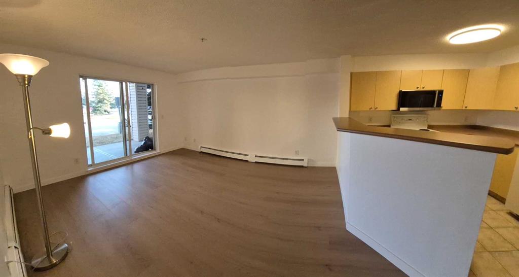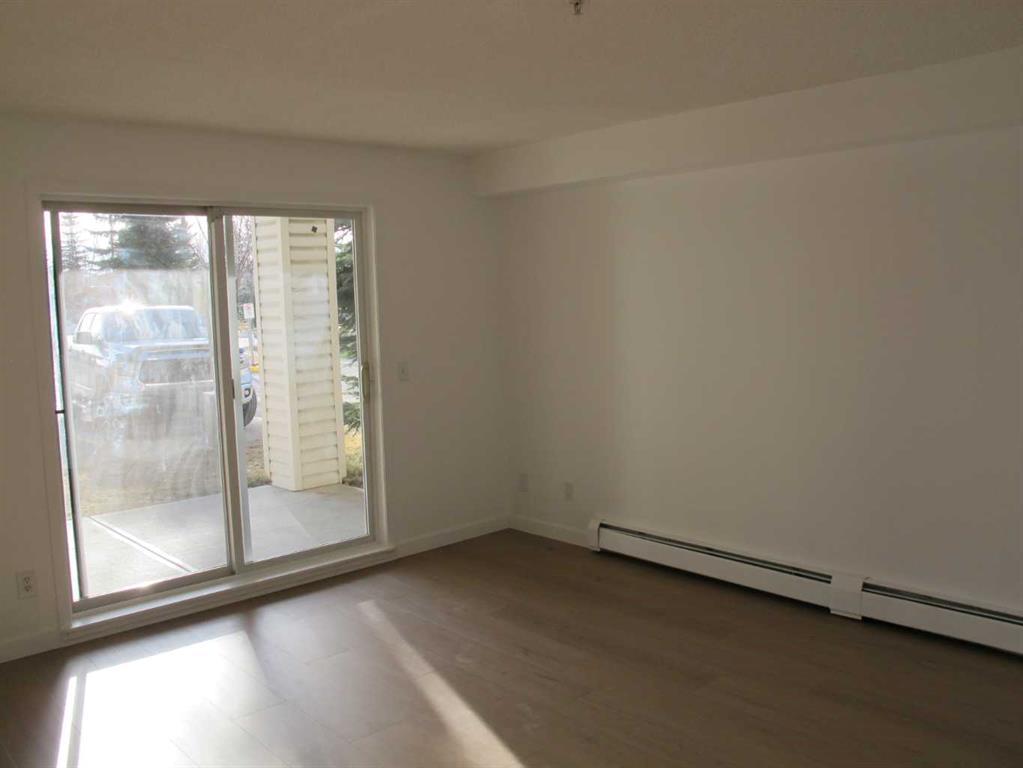 Welcome home to your easily accessible ground level, 2 bedroom 1 bath condo that i includes in suite laundry. With urgent care across the street, numerous dining and shopping right next door, and many schools (catholic K-9 and public K-12) walking distance, driving becomes optional. This is a beautiful spacious east facing unit that brings in the morning sun. Freshly painted makes it a blank canvas for you to add your personal touch. Newly installed 8mm luxury vinyl plank flooring makes easy to clean and maintain, along with an amazing feel on your feet. We invite you to come see for yourself and experience a condo to call home in a great building full of community and great neighbors. Right next to main entrance and handy cap parking just off the patio. Unit has sprinklers and a main floor patio.