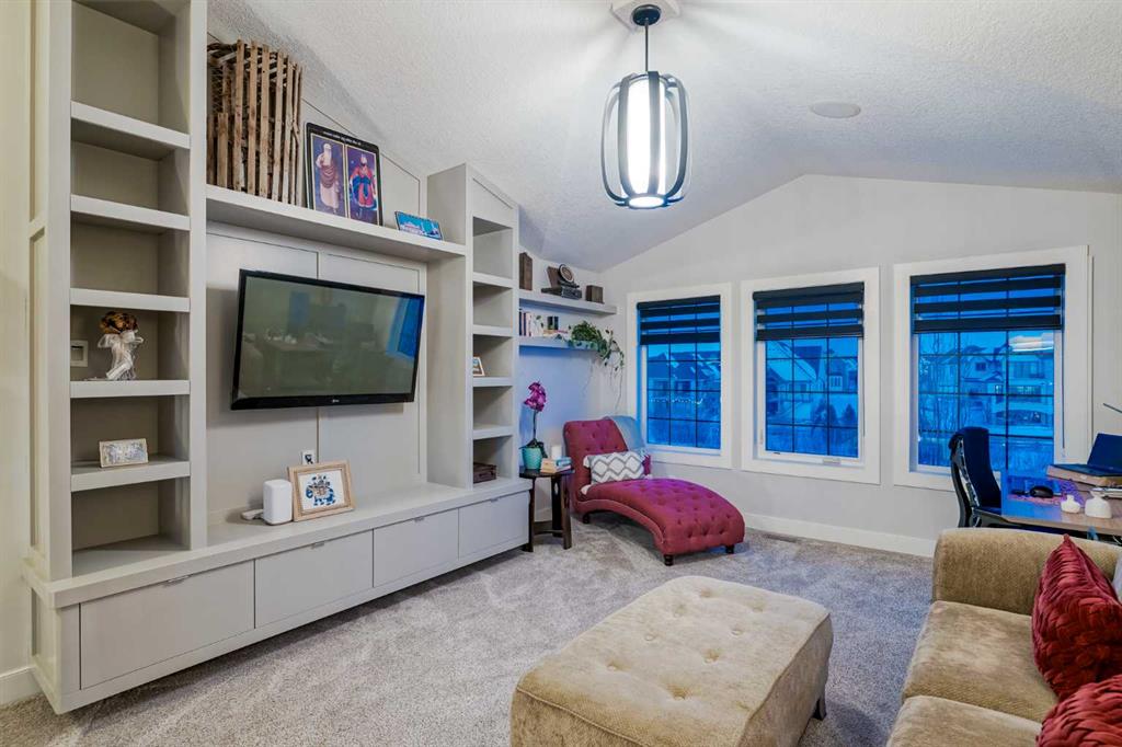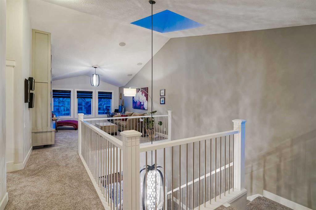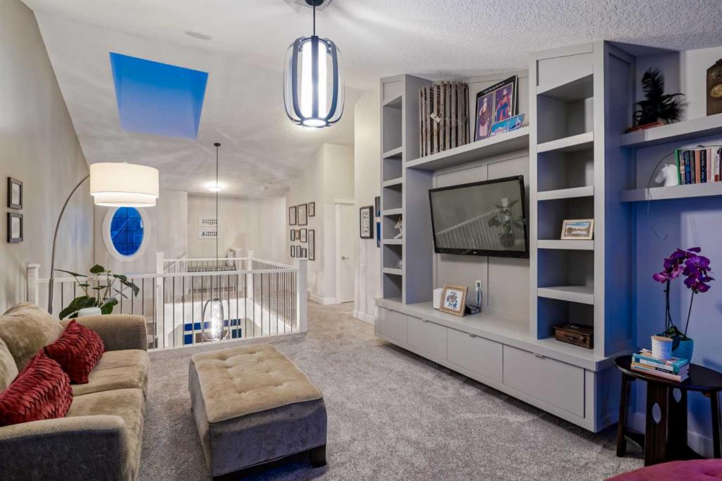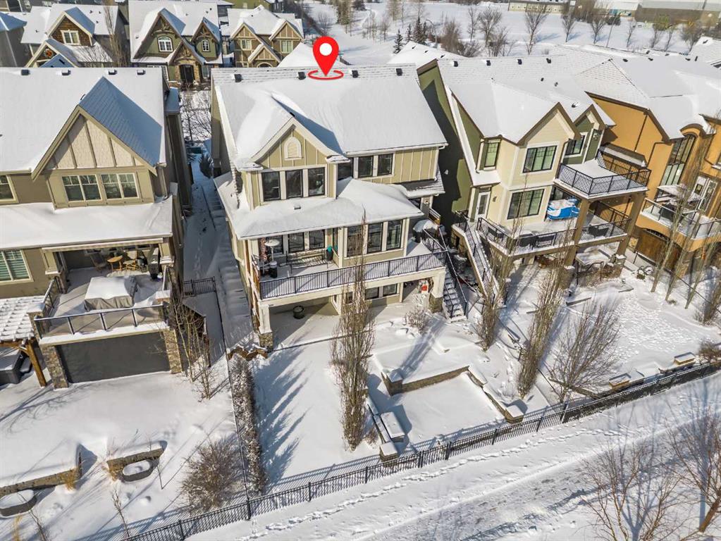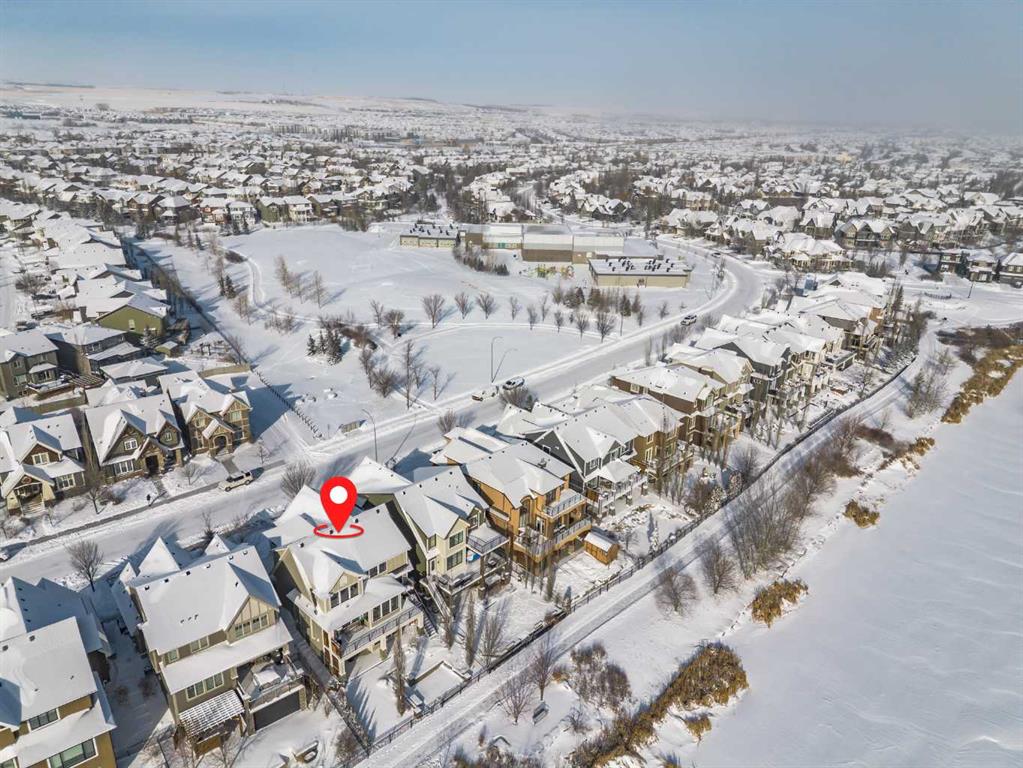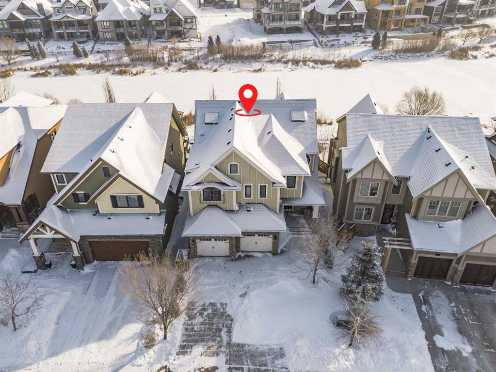 **OPEN HOUSE SUN MAR 1st 12PM – 4PM** Welcome to this exceptional McKee-built custom home in the prestigious community of Coopers Crossing, where refined craftsmanship meets unobstructed pond-side living. Offering over 3,700 sqft of professionally developed living space, this fully finished 4-bedroom, 3.5-bathroom walk-out home delivers an elevated lifestyle defined by architectural detail and premium upgrades. From the moment you arrive, the curb appeal is undeniable – an exposed aggregate driveway, covered front porch with cedar soffit detailing, and a fully landscaped lot create a strong first impression. The 708 sqft triple tandem heated garage is both functional and impressive, complete with overhead storage and room for vehicles, toys, or workshop space. Inside, a dramatic open-rise staircase anchors the main level, while engineered hardwood flooring flows throughout. The great room is designed for both everyday living and upscale entertaining, featuring a custom fireplace surround with built-ins and expansive windows framing tranquil pond views. The chef-inspired kitchen is a true showpiece. Thoughtfully upgraded with crisp white cabinetry, double islands, and premium stainless steel appliances, it includes a 48” Jenn-Air dual-fuel gas range, Vent-A-Hood range hood, and Electrolux side-by-side refrigerator/freezer. An exquisite under mount sink and refined finishes complete this elevated culinary space. From this level, step outside to your private backyard oasis: a full-width 33’4” x 9’8” composite deck with stairs leading to professionally designed stone scaping, low-maintenance turf, and a dedicated firepit and patio area (15’4” x 10’4”). Upstairs, vaulted ceilings and two skylights flood the bonus room, primary suite, ensuite, and laundry room with natural light. The primary retreat offers serene water views and a spa-inspired ensuite designed for relaxation. Three additional bedrooms complete the upper level, including one with a charming Juliet balcony. The fully developed walk-out basement extends the living space seamlessly outdoors and features a wet bar, spacious recreation area, hobby room, and additional storage. Morning coffees overlooking the water in summer. Skating on the pond in winter. This is a home designed to be experienced in every season. Additional highlights include upper-level exterior pot lights, custom built-ins throughout, security camera system and panel, pre-wired in-ceiling speakers with two Sonos bridges, dual furnaces plus A/C. Rarely do homes combine this level of finish, functionality, and uninterrupted pond views in one of Airdrie’s most sought-after communities. This is luxury living – without compromise.