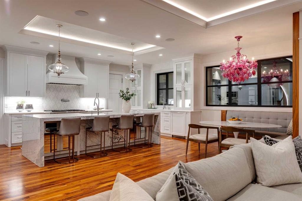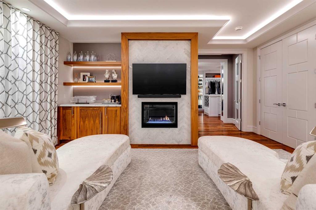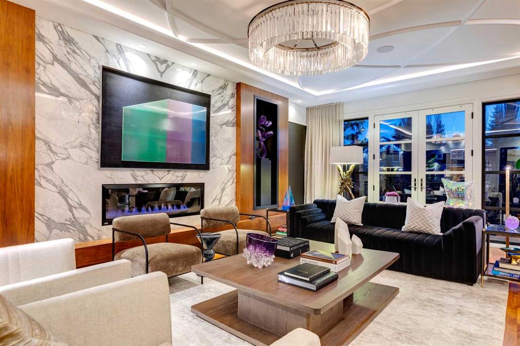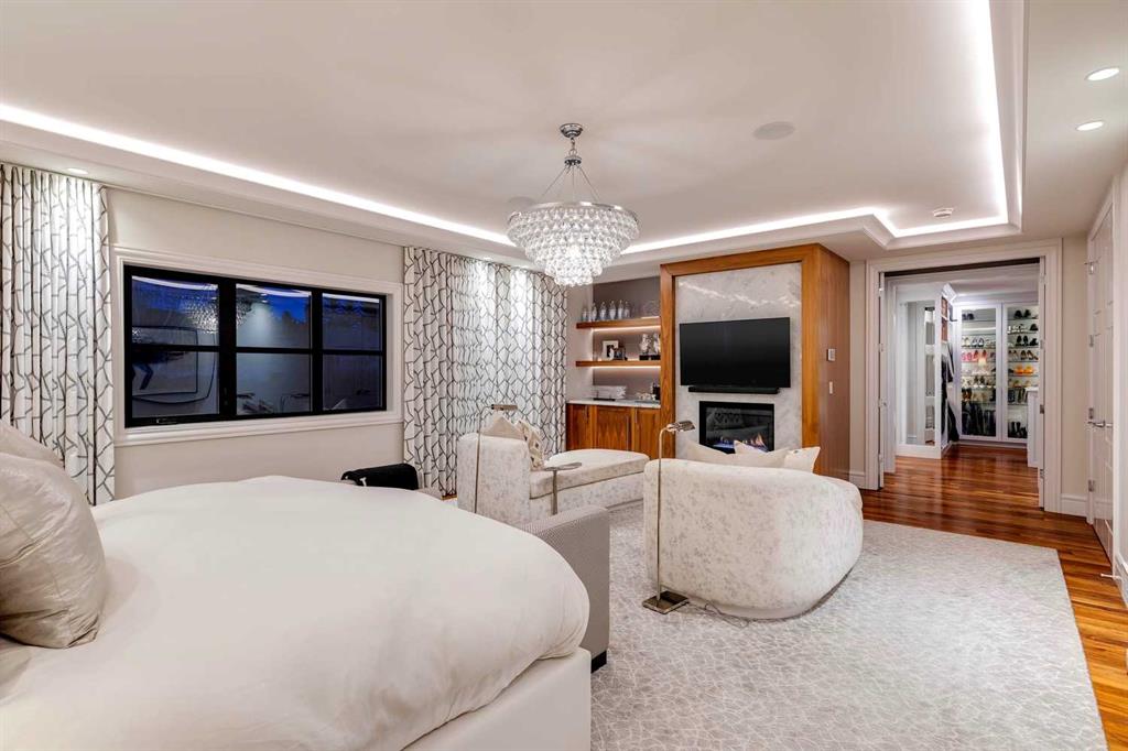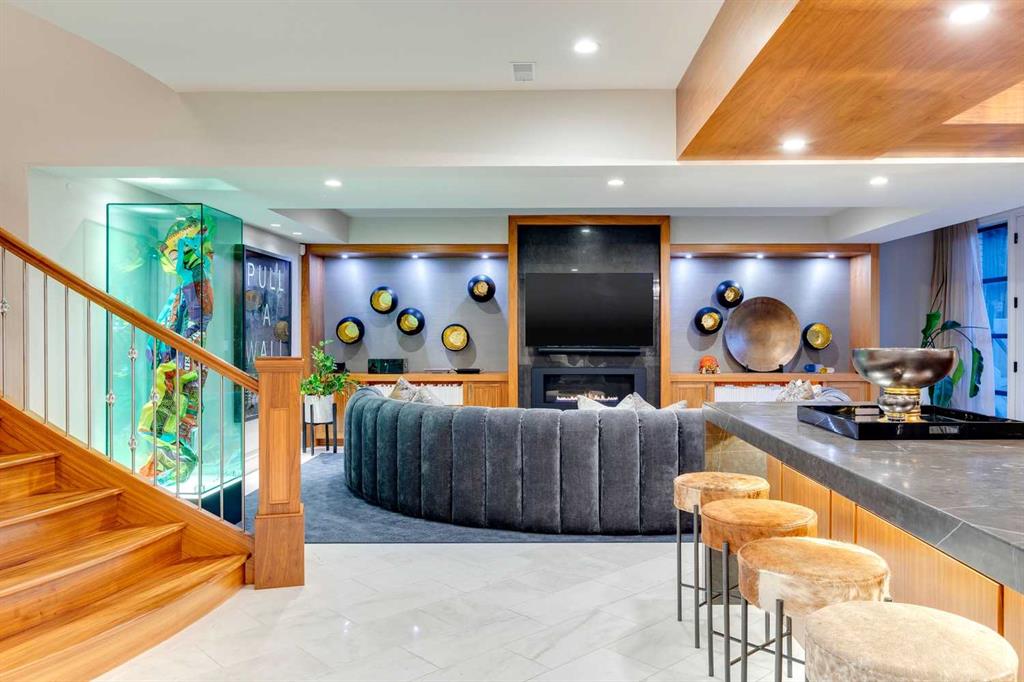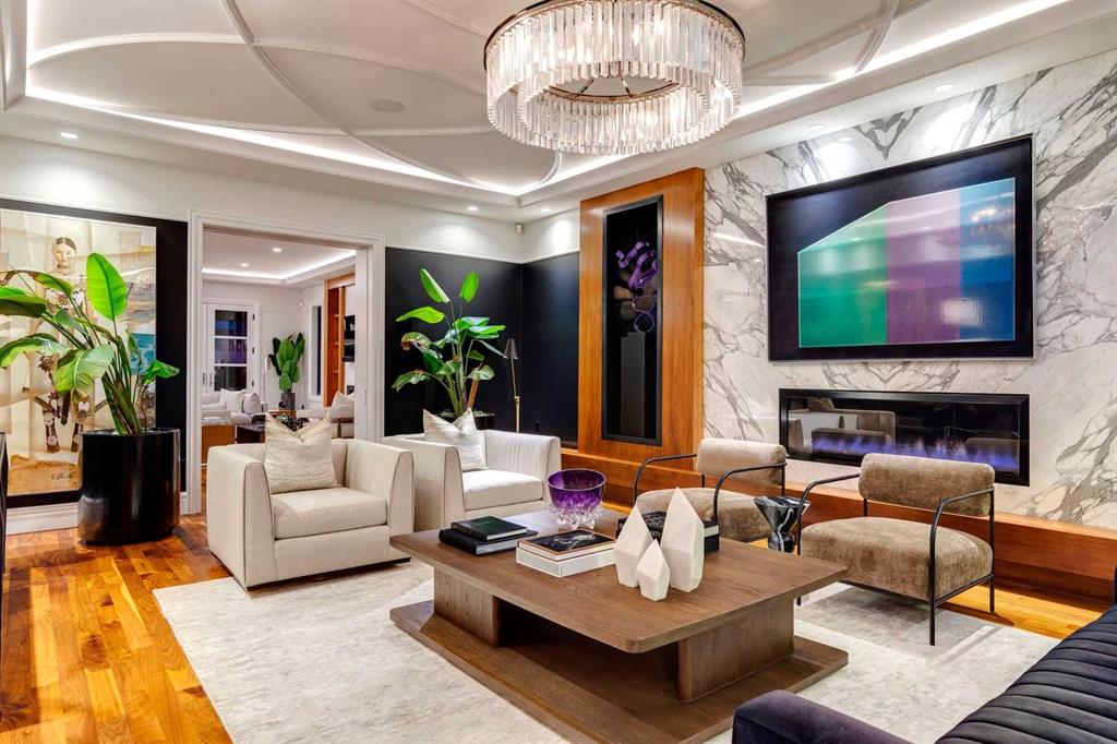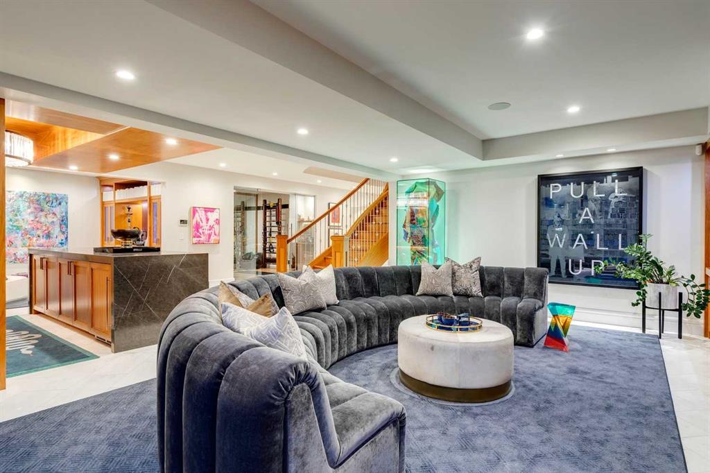 Phenomenal luxury Mount Royal home with over 7,600 sq ft of meticulously designed living space on a gorgeous huge lot that is privately gated + beautifully set back from the street. Stunning curb appeal + a dramatic entrance with a grand staircase is an impressive welcome to the home + leads to refined residence with a layout ideal for both family life + entertaining. The main level features beautifully appointed living spaces + is thoughtfully designed with a blend of open concept living + beautifully designated rooms. There is a gourmet chef’s kitchen, butler’s pantry + very comfy family room for casual living. Also a main floor library, huge living room + formal dining room which is elevated by a striking wine display. The generous mudroom leads to the oversized triple attached garage. The home offers 5 spacious ensuited bedrooms, providing exceptional privacy for family + guests. The impressive 800 sq ft primary retreat offers a lavish spa-inspired ensuite, expansive walk-in closet + serene views of the surrounding grounds. The walkout lower level is designed for next-level entertaining, featuring a sleek bar, media lounge + a boutique-style fitness studio. Multiple fireplaces throughout the home add warmth + ambiance to the luxurious interiors. Outdoors, the four spectacular living areas create indoor-outdoor flow, perfect for private relaxation + unforgettable gatherings. Close to all levels of exceptional schooling, parks, The Glencoe Club + downtown.