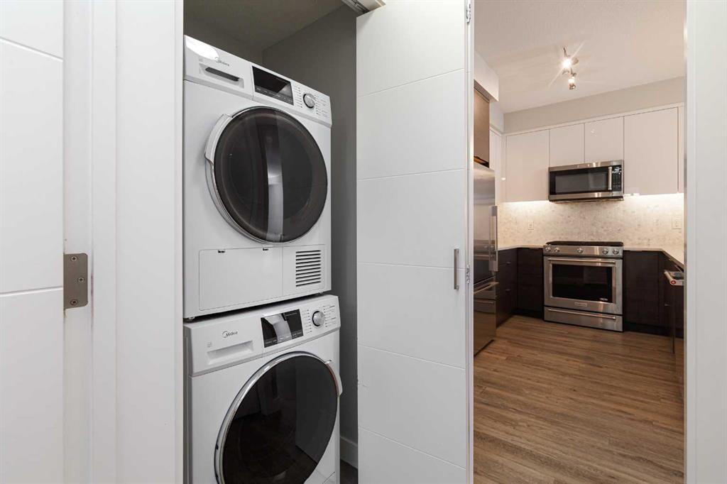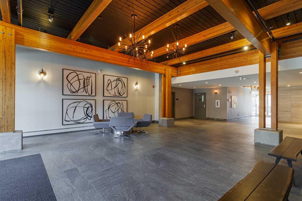 Welcome home to #1119 95 Burma Star Road SW! This contemporary main floor unit located in popular Currie Barracks, is just a five minute walk to Mount Royal University, and minutes away from nearby parks, restaurants and pubs. The upscale complex features a gorgeous front lobby with open beam ceilings, trendy art work and a large sitting area. The stylish unit is open and bright, and has an elegant modern kitchen open to the spacious living room that walks out onto your private covered patio with natural gas barbecue hook up. Contrasting high gloss white lacquered cabinet doors and the wood grain look cabinetry, bright marble back splash, quartz countertops, stainless steel appliances, and vinyl plank hardwood create an alluring aesthetic. The unit features a bedroom with a pleasingly spacious walk-through closet and ensuite, in-suite laundry, and air conditioning that ensures your comfort. The beautifully landscaped outdoor spaces, courtyard, titled underground parking stall, ample visitor parking, car wash bay, and bicycle storage complete this incredible opportunity. Located just a ten minute drive from downtown, Currie Barracks offers a two-fold lifestyle, including an easy drive or uber to the commercial core and the vibrant cultural and restaurant scene that inner city Calgary has to offer. It also offered the opportunity to enjoy the quiet, walkable neighbourhood, paths, parks, fenced dedicated dog park, and nearby pubs and restaurants. Don’t miss your chance to call this stunning condo your new home!