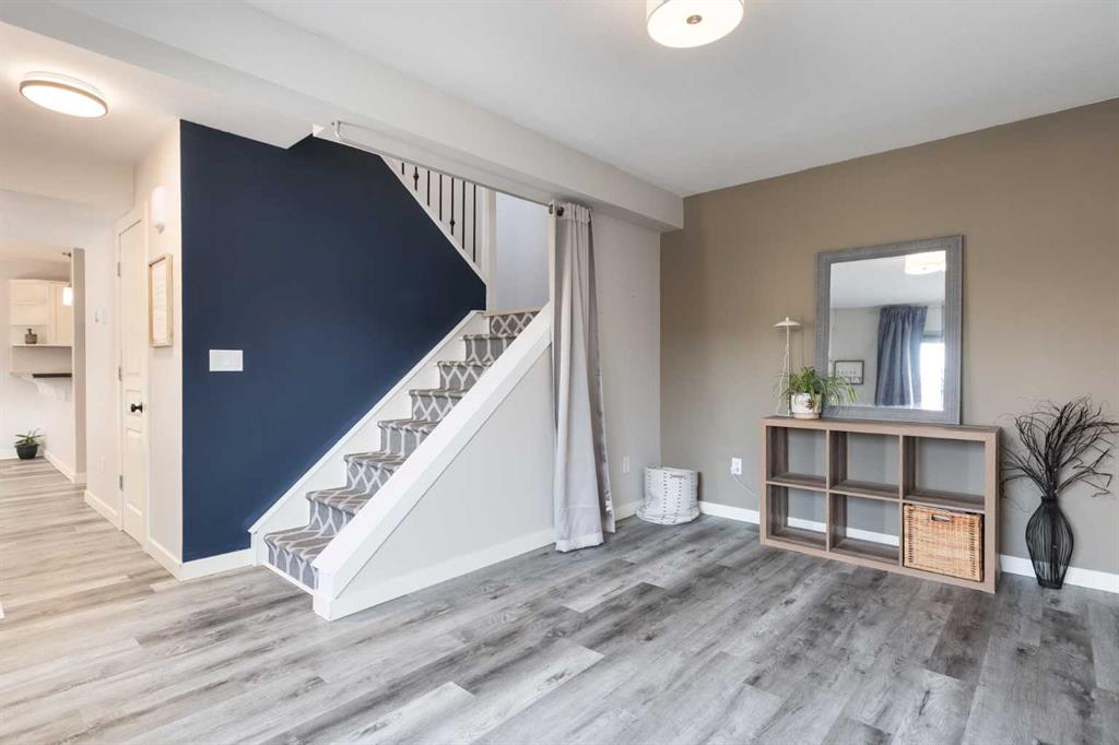 Welcome to this IMPECCABLY curated TWO bedroom, 1.5 bathroom corner townhouse, two-storey residence that blends thoughtful design with ELEVATED everyday living AND in one of the BEST LOCATIONS in Glamis Green!! Bathed in natural light thanks to its coveted WEST-facing corner positioning, this home has been EXTENSIVELY upgraded with a cohesive, CONTEMPORARY aesthetic that feels both timeless and refined. The kitchen is a true statement piece. Beautiful white shaker cabinetry and luxurious granite countertops, creating a tailored, high-end finish. Striking chrome fixtures provide bold contrast against the neutral palette, while PREMIUM stainless steel appliances – bring both style and performance. New LUXURY vinyl plank flooring flows effortlessly throughout the home, complemented by curated DESIGNER accents throughout. Fresh paint, updated hardware, modern lighting, fabric curtains, and custom feature walls add warmth and architectural interest at every turn. A cozy gas fireplace anchors the main living space, creating an inviting AMBIANCE perfect for intimate evenings or effortless entertaining. Large SUNNY west-facing windows blends indoor and outdoor living with ease. Upstairs, the main bathroom renovation is nothing short of STUNNING – beautifully finished with elevated materials and impeccable craftsmanship. Two generously sized bedrooms offer flexibility for guests, a home office, or growing needs, while the PRIMARY RETREAT enjoys direct access to a private upper balcony – your own quiet retreat for morning coffee or evening unwinding. Convenient upper-level laundry washer and dryer area add practical luxury. The outdoor space has been thoughtfully designed for low-maintenance enjoyment, featuring a fully decked and fenced patio area that easily accommodates a dining set or lounge seating to ENJOY the warmth of the evening sun. An ATTACHED single garage provides secure parking and additional storage, and the well-managed complex offers peace of mind to home owners. Positioned directly across from a green space and a no-thru road, the setting feels TRANQUIL and private while remaining exceptionally connected. Glenmore, Sarcee, Stoney, and Crowchild Trails are all moments away, placing you just minutes from Westhills Shopping Centre, North Glenmore Park, Mount Royal University, public transit and many more amenities, and only 15 minutes to downtown – making this one of the most DESIRABLE LOCATIONS. Stylish, turnkey, and effortlessly convenient – this is ELEVATED townhouse living in a location that truly delivers. CALL TODAY to BOOK YOUR PRIVATE TOUR!!