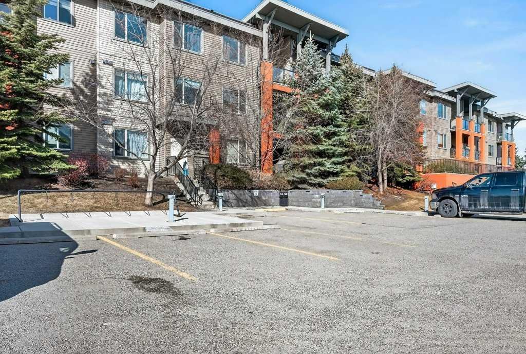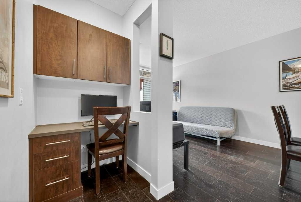 Welcome to this ground-floor condo, ideally located just steps from Valleyview Park and the Bow River pathway system, where you can enjoy beautiful views of the downtown skyline. With easy access to Deerfoot Trail, commuting downtown or reaching any quadrant of the city is effortless. This well-designed 1-bedroom, 1-bathroom unit offers 573 sq ft of comfortable living space, perfect for first-time buyers, downsizers, or investors. The functional layout features warm cork flooring throughout the main living area, a primary bedroom with a walk-in closet, a spacious bathroom and a thoughtfully designed kitchen complete with a large peninsula and breakfast bar. A built-in office nook provides a convenient work-from-home setup, while in-suite laundry and low condo fees (including heat) add to the home’s practicality. Enjoy the peace and privacy of having no neighbours below, along with the convenience of titled parking. Located in a quiet, well-maintained, modern, and pet-friendly building, this home also features a large private patio. You’ll love the easy access to nearby shopping, transit, the Southview Off-Leash Dog Park and a wide variety of dining options along International Avenue.
