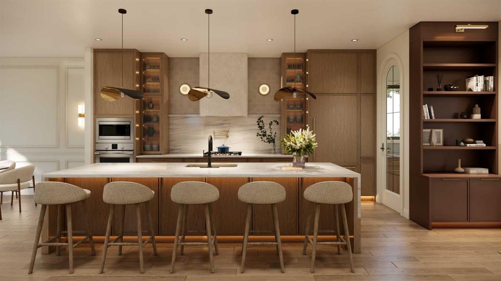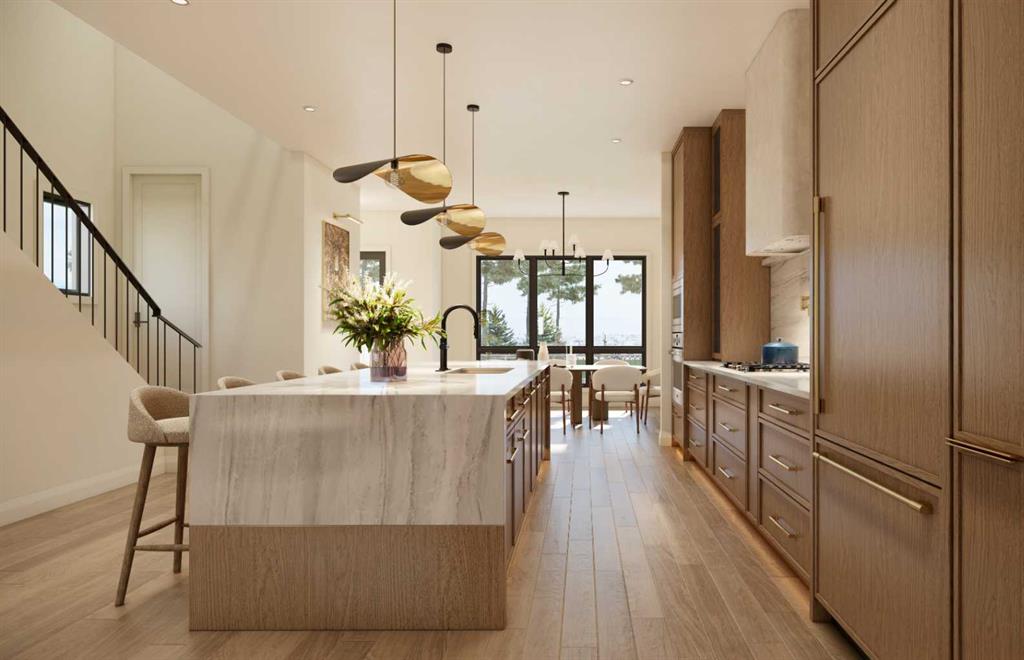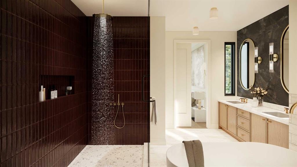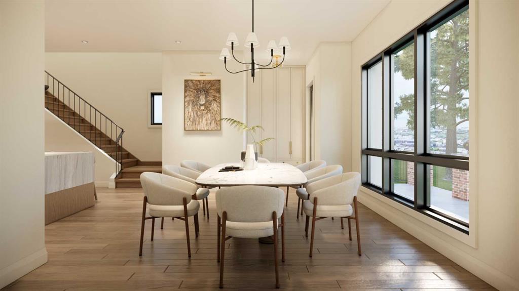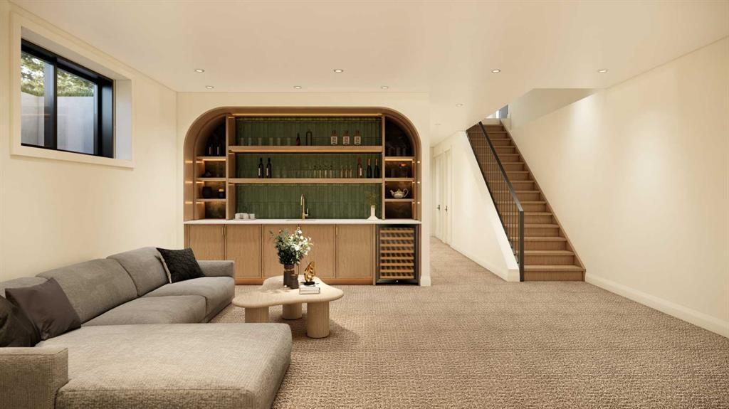An extraordinary pre-sale opportunity, welcome to 112 7 Ave NW, a stunning custom-built residence, crafted by Sage Group Developments. This home blends modern design, comfort, and functionality across three thoughtfully designed levels. Offering 3,350 sq. ft. of living space, this 4-bedroom, 4.5-bathroom home delivers exceptional craftsmanship and elegant style in every detail. From the outside, the striking red-and-black exterior paired with oversized windows creates a bold, contemporary curb appeal while inviting natural light throughout the interior. The small front porch provides a welcoming entryway, while the rear of the property features an attached two-car garage and an open space perfect for a back porch or patio, ideal for entertaining and family gatherings. Inside, the main floor impresses with soaring 10-foot ceilings and a bright, open-concept design. A welcoming foyer with a built-in closet leads into the dining room at the front of the home. The heart of this level is the chef’s kitchen, complete with a generous island, walk-through pantry, and seamless access to the mudroom and garage. The spacious living room, centered around a cozy gas fireplace, provides the perfect spot to relax or host guests. Just a few steps up from the main level, a conveniently located powder room completes this floor. The upper level offers 9-foot ceilings and three bedrooms, each designed with privacy and comfort in mind. Two secondary bedrooms feature built-in closets and private four-piece ensuites, while the laundry room is smartly placed nearby for convenience. At the end of the hall, the primary suite is a true retreat, with a generous walk-in closet and a spa-inspired five-piece ensuite featuring dual sinks, a soaker tub, and a glass-enclosed shower. The fully finished basement expands the living space even further with 9-foot ceilings, a spacious rec room with wet bar, and a dedicated gym behind a modern glass wall. A large bedroom with a walk-in closet and a full bathroom make this level perfect for guests, extended family, or an additional private retreat. A unique halfway walkout to the backyard ensures easy outdoor access from this floor. With its thoughtful floor plan, high-end finishes, and prime location, 112 7 Ave NW is more than just a house—it’s a forever home designed for both luxury living and everyday comfort.