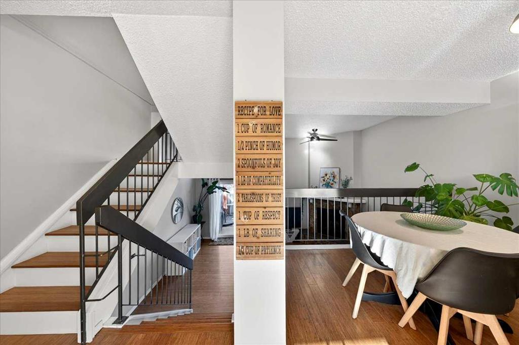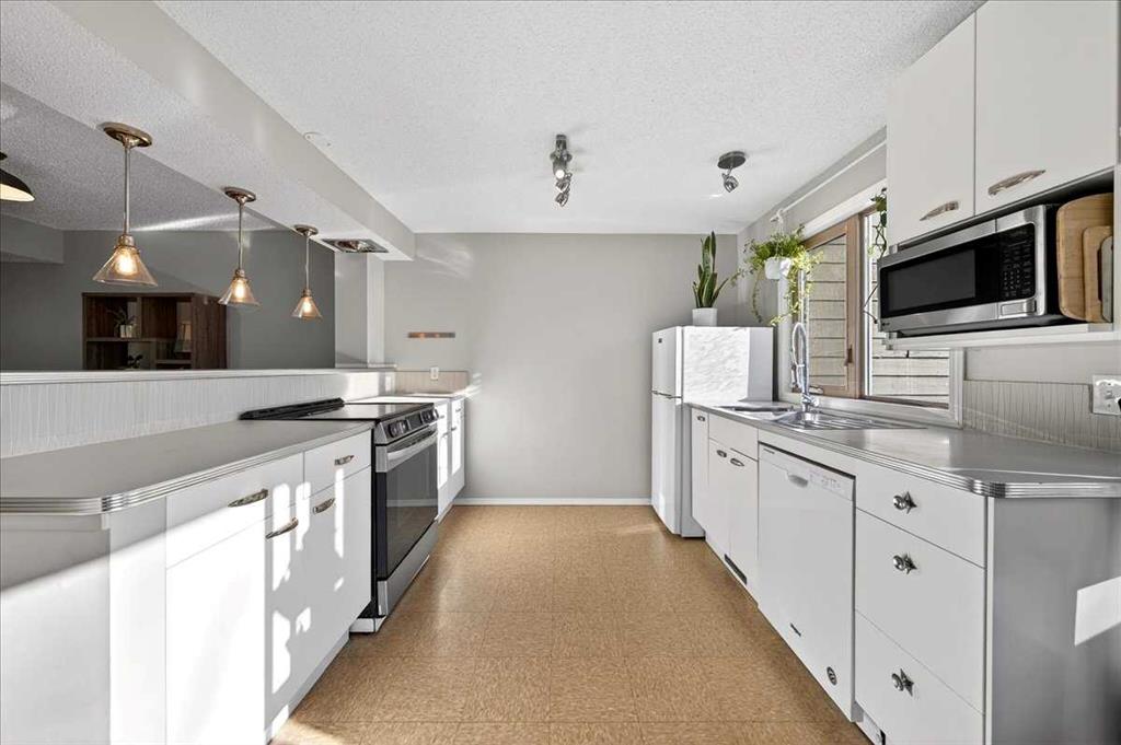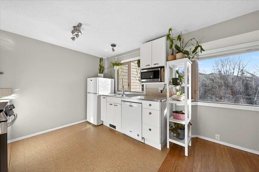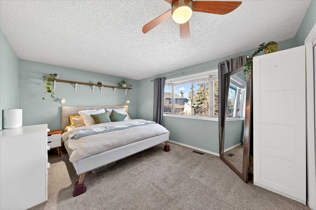 Unique and ideally located, this townhouse is found in the sought after community of Glamorgan. A bright and airy SW facing home – perfectly positioned END UNIT not only sides, but also backs onto peaceful GREEN SPACE with mature trees. Minutes away from all the amenities you need – public transit, shopping, groceries and Stoney trail for quick drive anywhere in the city. SIGNAL HILL SHOPPING CENTER, RICHMOND SQUARE, MOUNT ROYAL UNIVERSITY are only minutes away, while excellent schools, parks, playgrounds and pathways are abundant in this walkable community. In this WEST SIDE location, a bright and spacious 3-bedroom, 2.5 baths offers so many perks. A SINGLE CAR GARAGE WITH DRIVEWAY for your vehicles, while ELECTRIC HEAT is ready to go in the garage and your own PRIVATE AND SPACIOUS YARD WITH DECK offers endless options to enjoy your space while facing the mature trees in the area. 12 FT CEILINGS greet you in the living area off the deck, a WOOD BURNING FIREPLACE soothes you on those chilly evenings, and the OVERSIZED KTICHEN and dining area on the next level up are glowing with sunlight year round. NEW APPLIANCES in 2025 include REFRIGERATOR, ELECTRIC OVEN, as well as a WASHER AND DRYER. Upstairs you’ll find a massive primary bedroom with wall to wall closets and a 4 piece ensuite. 2 secondary bedrooms and another 4 piece bath complete the upper floor with the open stairwell flooding light in from below. Recent upgrades include new flooring, newer windows, and upgraded attic insulation. The basement level is unfinished, but still offers plenty of opportunity and storage space for added convenience. Located close to everything, this well maintained complex is tucked into one of Calgary’s most established and desirable communities offering comfort, space, and unbeatable value. This one might be “THE ONE”