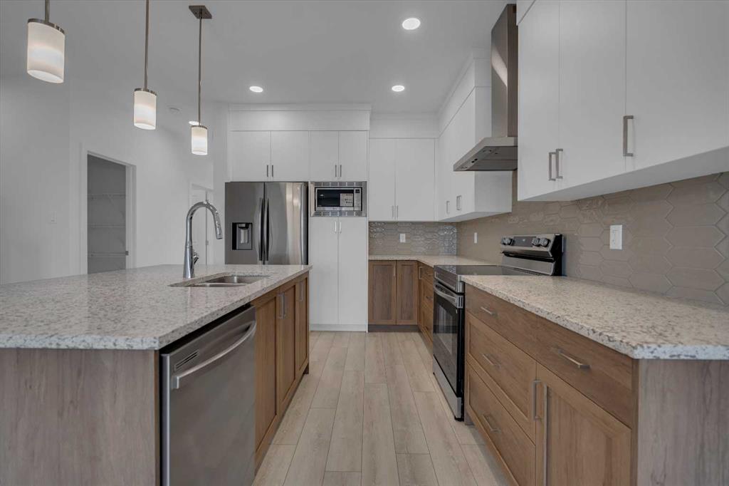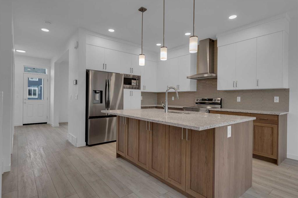 Welcome to Your Dream Home in Calgary’s most sought after lake community in MAHOGANY – Where Luxury Meets Practical Living! Step into this brand new, never lived in masterpiece built by EXCEL HOMES – the upgraded Berkley model offering 1870 sf of contemporary design, exceptional functionality AND a 2 bedroom LEGAL BASEMENT SUITE W/PRIVATE ENTRY. Nestled in Calgary’s vibrant LAKE COMMUNITY, you’ll enjoy quick access off Stoney Trail or Deerfoot Trail. From the moment you walk in, this home impresses with its thoughtful layout and premium finishes. The open-concept floor plan seamlessly connects the living room, dining area, and showstopper kitchen – the true heart of the home. Cook like a pro in your chef-inspired kitchen with upgraded stainless steel appliances including built-in microwave, chimney-style hood fan, and an abundance of cabinets and deep pot drawers…and a massive island w/even more storage!. You’ll also find a versatile flex room at the back of the house – perfect for home office, playroom or guest bedroom. Upstairs, the second level offers three spacious bedrooms including a stunning primary suite with a walk-in closet and dual sink ensuite. A vaulted bonus room with pot lighting adds an elevated family retreat, and the convenient upper-level laundry room makes day-to-day living easier. Thinking about rental income or extended family options? This home offers a LEGAL TWO BEDROOM SUITE, all done to upstairs standards and a private exterior side entrance. This is an amazing opportunity for rental income or extended family! As a Certified Built Green home, you’ll benefit from energy-saving features and smart home tech, including Ring doorbell, Wi-Fi-enabled garage opener, smart thermostat, extra CAT6 and USB outlets, plus 9′ knockdown ceilings, metal stair railings, and luxury vinyl plank flooring on the main level. Whether you’re a growing family, savvy investor, or multi-generational household, this is the home you’ve been waiting for. Move in, unpack, and start living your best life in Mahogany.