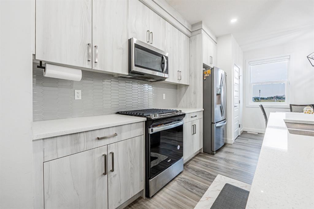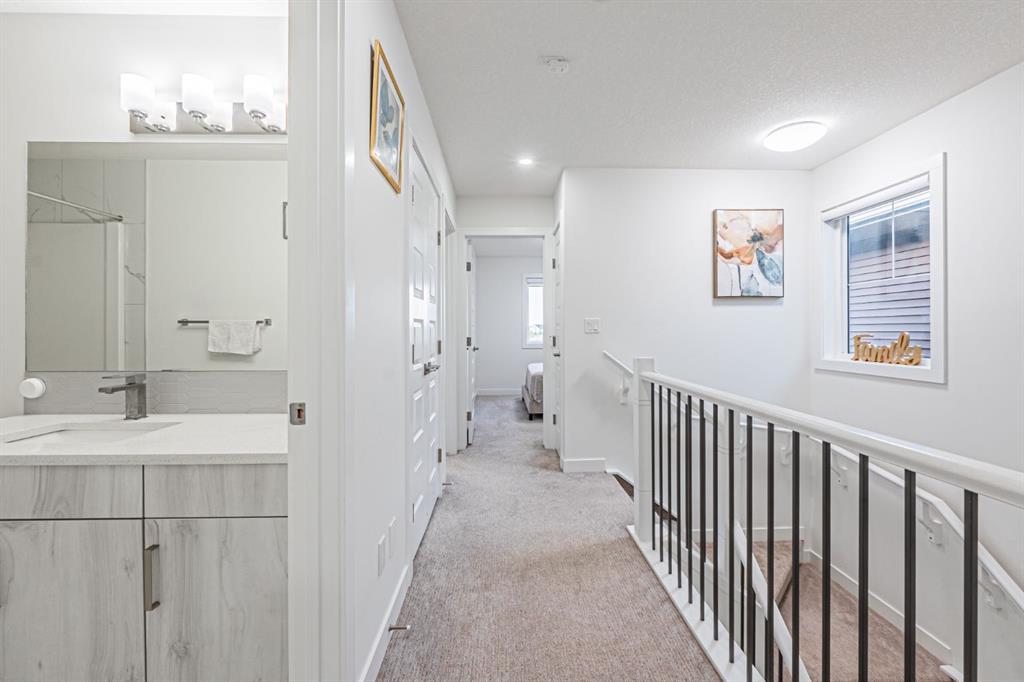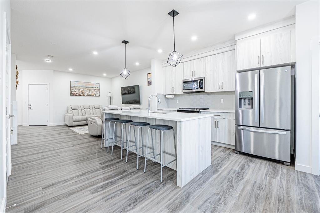 Welcome to this stunning and exceptionally maintained front garage duplex in the sought-after community of Midtown, Airdrie. This beautiful home showcases a modern design, high-end finishes, and a functional layout perfect for families, professionals or investors. With a total of 4 bedrooms plus a den and 3.5 bathrooms, this property offers exceptional comfort, versatility, and value.