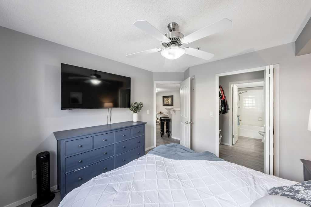 Check out this freshly updated 2-bedroom, 2-bathroom main floor condo, complete with a titled underground parking space, an additional storage unit, and low condo fees that include utilities—all within easy walking distance to groceries, retail shops, and restaurants! Located in the desirable community of McKenzie Towne with convenient access off 130th Avenue, this tastefully updated unit showcases vinyl plank flooring throughout the entire condo, adding both style and durability. The kitchen includes stainless steel appliances, updated white subway tile backsplash, modern countertops, ample cabinetry, and a convenient breakfast bar, perfect for casual dining. This open-concept space features a generous living room and is completed by a dining area that adds flexibility for both daily living and entertaining. The bright and spacious primary bedroom features a walk-through closet that leads directly to the private ensuite bathroom. The second bedroom and main bath are thoughtfully positioned to create a more private space, making this unit ideal for small families, roommates, or overnight guests. An in-suite laundry room adds everyday convenience while also providing valuable extra storage space. This unit is located on the quiet backside of the building, away from roadways and parking lots, and presents a large, covered patio off the living room that opens to an expansive green space. Book a showing today and see for yourself the exceptional value and unbeatable convenience this condo has to offer!