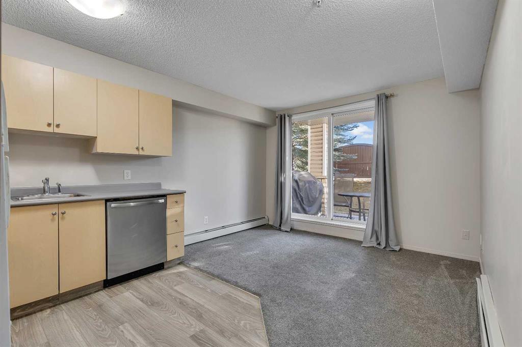 Main floor bachelor suite with south exposure. The flooring has been upgraded, & appliances upgraded, painting also updated. Good size kitchen & living room that has patio doors to access the south facing patio, 4pc bath & laundry combo & a flex room that can be used for the bedroom. There is 1 assigned outdoor parking stall. Condo fees are only 210.52 per month. Close to shopping, bus, green spaces, parks & all other amenities. Click on link to view 3D walk through.