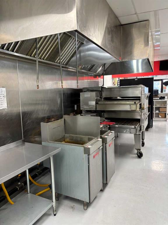 Former pizza takeout restaurant; range hood, walk-ins included. Rest kitchen available to negotiations.