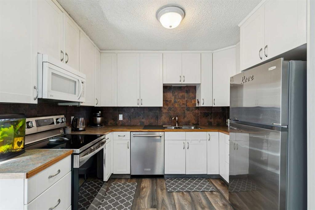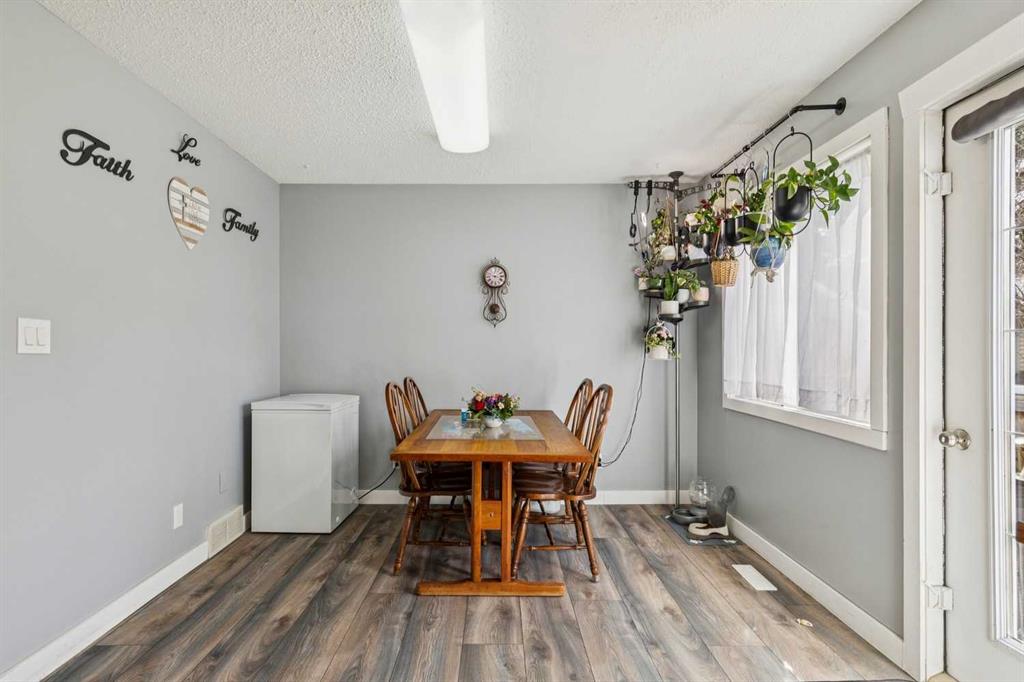 This inviting home offers a functional layout with comfortable living space, durable laminate flooring, and fresh neutral paint throughout. The eat-in kitchen is practical and welcoming, featuring stainless steel appliances and full-height cabinetry. The home includes three bedrooms above grade, plus a fourth bedroom in the basement, along with a large undeveloped rec room offering future potential. Bathrooms have been updated with new toilets, including a convenient 2-piece on the main floor and a 4-piece main bath. A high-efficiency furnace provides reliable heating and improved energy efficiency. Outside, the private fenced backyard offers a great space for relaxing or entertaining, and the covered carport provides year-round vehicle protection. Located on a quiet street close to parks, schools, shopping, and other amenities, this property presents a solid opportunity for first-time buyers, downsizers, or investors looking in Okotoks.