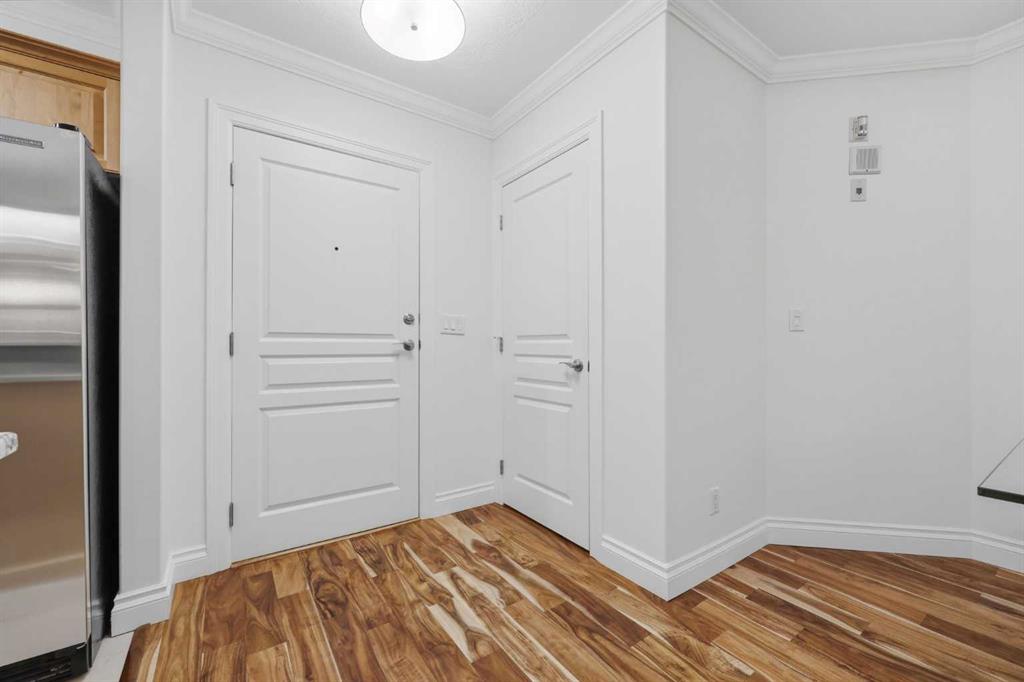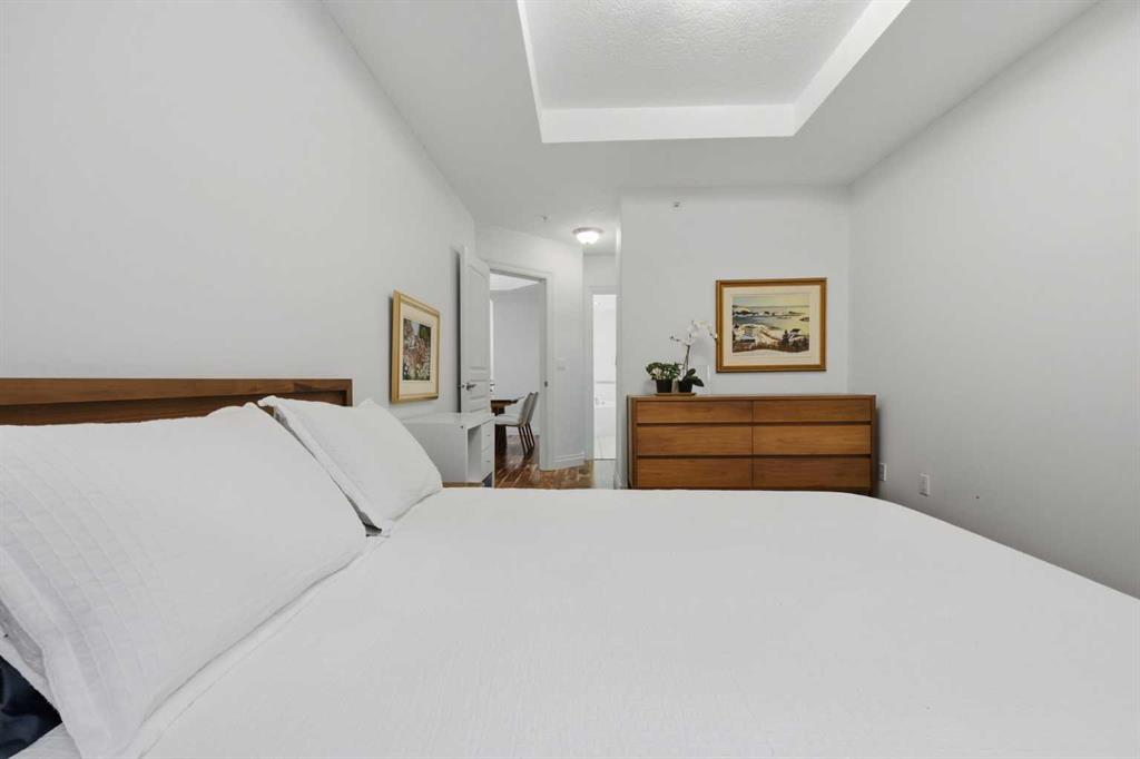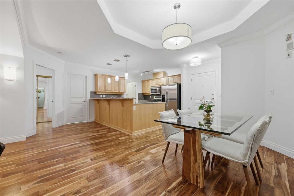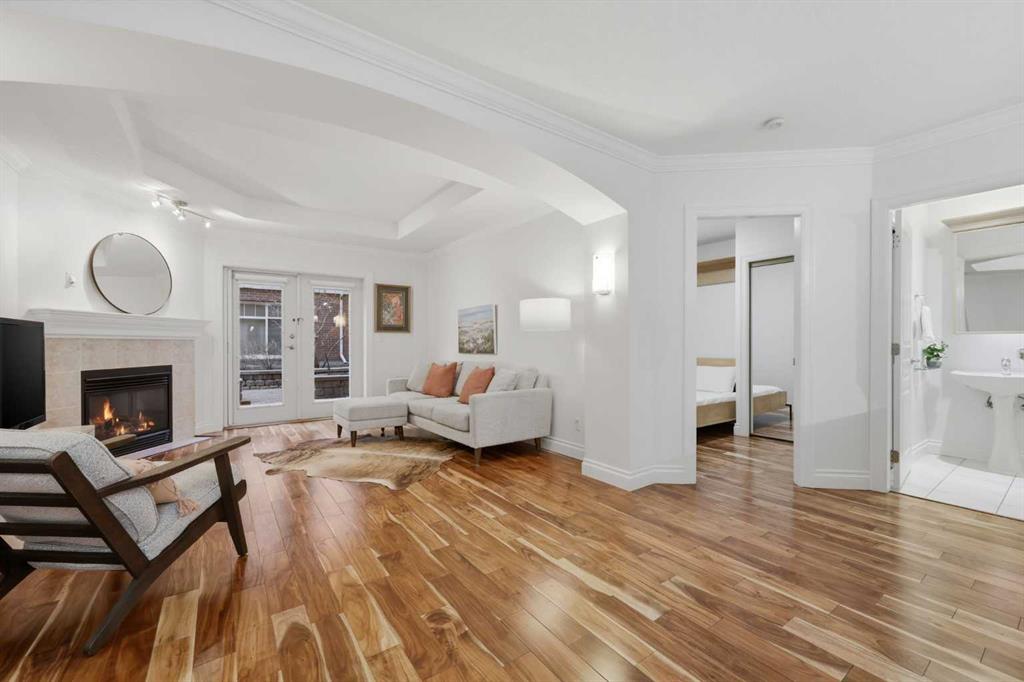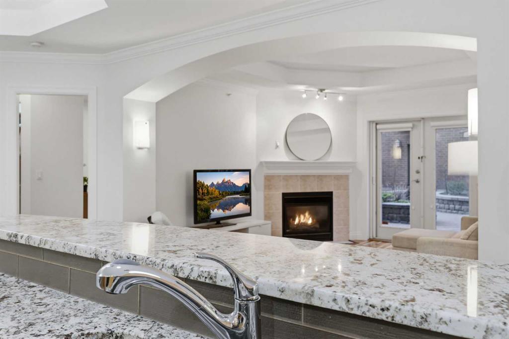 Effortless Elegance in Erlton. For those ready to simplify without compromise, this beautifully appointed two-bedroom residence in Erlton offers a rare balance of sophistication, serenity, and walkable urban living. Just steps from the river pathways along the Elbow River and moments from the restaurants and cafés of Mission, the setting feels both connected and quietly removed. Inside, the home reveals a calming palette and enduring finishes designed for comfort and ease. Solid concrete construction ensures remarkable quiet — an invaluable luxury for professionals who work from home or value true relaxation at day’s end. In-floor heating provides consistent warmth beneath rich hardwood flooring, while the gas fireplace creates an inviting focal point for intimate evenings or relaxed entertaining. The kitchen is as functional as it is welcoming, with granite countertops, an expansive breakfast bar for casual gatherings, and a separate dining area suited to everything from weeknight dinners to hosting close friends. The layout flows naturally, offering just the right amount of space — never overwhelming, always intentional. Positioned on the main floor, the residence offers seamless access to a private patio — ideal for morning coffee, container gardening, or simply enjoying fresh air without the upkeep of a larger property. It’s a lifestyle shift that prioritizes freedom: lock-and-leave convenience for travel, and manageable elegance for everyday living. Beyond the suite, a landscaped courtyard centered around a tranquil pond and fountain creates a peaceful backdrop. Residents enjoy thoughtfully arranged seating areas, welcoming meeting spaces, and a refined snooker lounge — amenities that foster community while maintaining privacy. This is living designed for those who value quality over quantity — where riverside walks replace yard work, and evenings out are just steps from home. A graceful next chapter, in one of Calgary’s most charming enclaves.