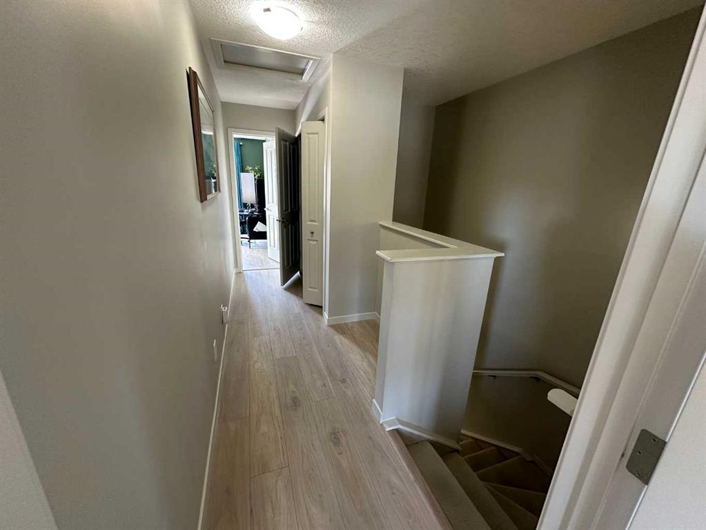 LOCATION! LOCATION! LOCATION! Welcome to this fabulous End-Unit that backs West with Mountain views and has a paved rear alley providing access to your over-sized single attached garage. This lovely home is flooded with sunlight in the mornings and all throughout the day, capped off with beautiful sunsets! Privacy is paramount with this beautiful home as it looks west over the surrounding homes in the area. On the upper level there are 2 very generous primary bedrooms with each having it’s own 4 piece ensuite with granite counters and a spacious walk-in closet. The conveniently located laundry area completes the top floor. The open-concept main level showcases 9′ ceilings and a Chef inspired kitchen with complete with granite counters, stainless steel appliances, a walk-in pantry and an over-sized island! Rounding out the main floor is a generously sized dining area and lovely living room which is perfect for enjoying quiet nights at home or entertaining friends and family! There are two spacious entrances to this lovely home along with access from the over-sized single attached garage that also has ample room for a workbench or storage. This unit has a concrete driveway which allows you to have another parking space! The lower level has a den/office/work shop with loads of storage and has also been finished and sound proofed with SONOPAN sound proofing and ROCKWOOL insulation. This home prides itself as being immaculately cared for by it’s owners and is in move-in condition. In addition to everything else, there are 3 – ceiling fans (one of them is controlled by a remote), a Smart Thermostat with 2 movable temperature sensors and 3 – Smart switches that are all capable of being App controlled. Copperfield offers schools, walking and biking paths, playgrounds galore, easy access to Stoney Trail and Deerfoot Trail, lots of green spaces and numerous shopping options! Book your private viewing today, you won’t be disappointed!