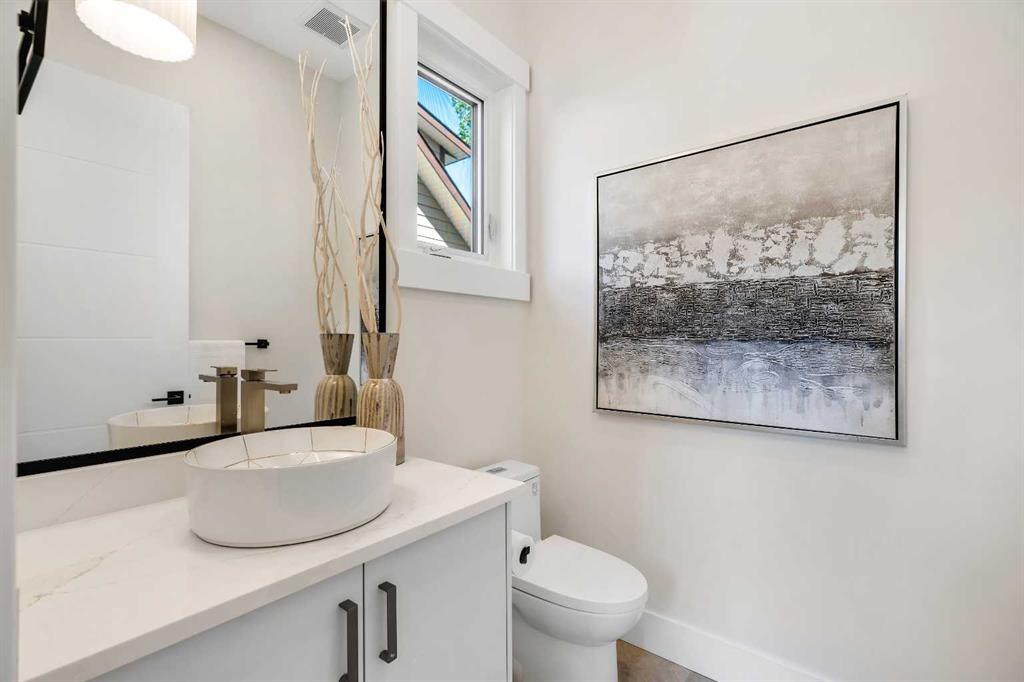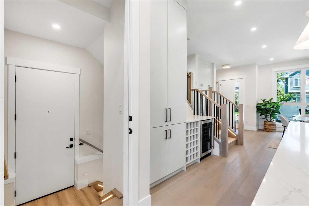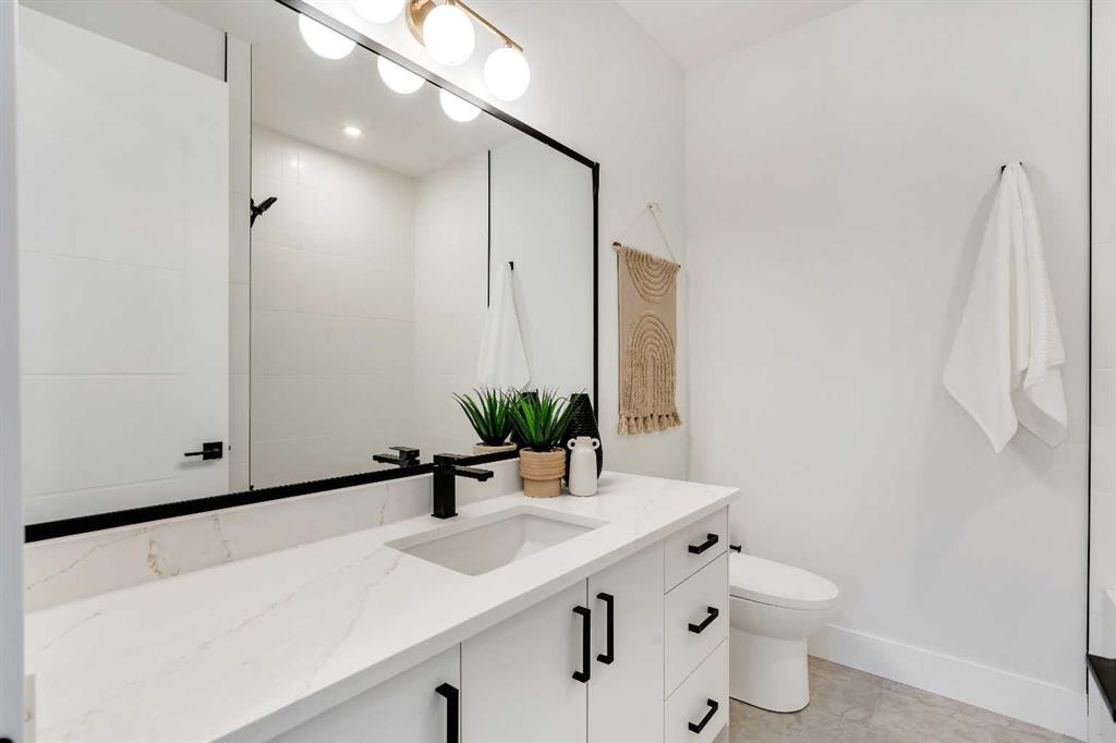 Downstairs, you’ll find a LEGAL 1-BEDROOM SUITE (approved by the city) – ideal for rental income, multigenerational living, or guest space. With its own private entrance and mudroom-style bench with hooks, it feels completely independent. Inside, the modern kitchen is finished with quartz counters, custom cabinetry, and a central island for tons of prep space. The suite also includes a generous living area with a large window, a full 4-piece bathroom, in-suite laundry, and a spacious bedroom with a walk-in closet.