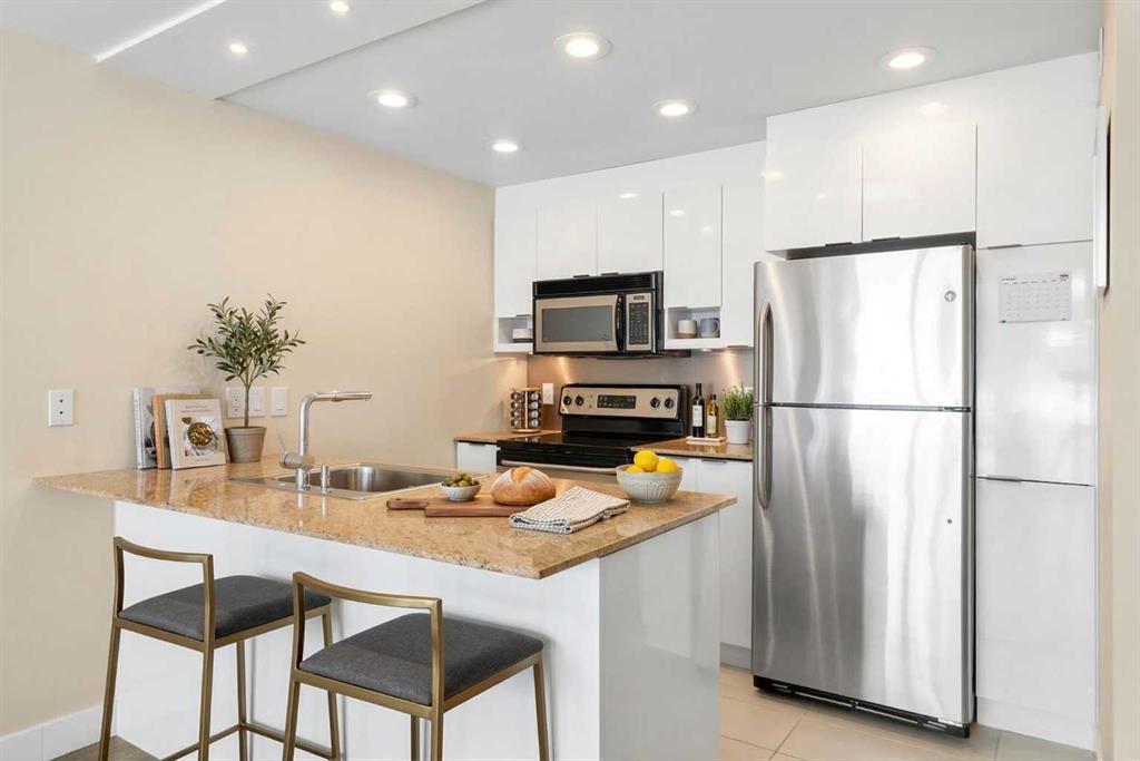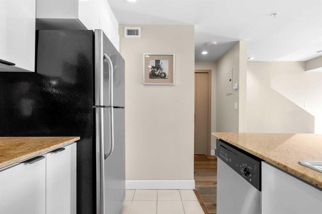 Welcome to Stella! Located in one of Calgary’s most vibrant and walkable neighbourhoods, this 2-bedroom, 2-bathroom townhouse offers the perfect mix of comfort, convenience, and lifestyle. With direct street access, this home has a unique feel that blends the privacy of a townhouse with the benefits of condo living, ideal for professionals, first-time buyers, or investors looking for a strong revenue generating opportunity. Inside, the home features a bright and open layout with 9-foot ceilings and large windows that bring in plenty of natural light. The kitchen is both stylish and functional with granite countertops, stainless steel appliances, and plenty of cabinet space for storage and meal prep. The living and dining areas flow comfortably together, creating a great space for everyday living or hosting friends. Both bedrooms are well-sized, including a primary bedroom with a private, south facing balcony and its own ensuite, while the second bedroom and additional full bathroom offer flexibility for guests, roommates, or a home office setup. This unit also includes one titled underground parking stall, as well as an assigned storage locker. Residents of the building enjoy access to great amenities, including a fully equipped gym, steam rooms, concierge service, guest suite, bike storage, underground visitor parking, lounge, and central courtyard. Step outside the unit and you’re surrounded by everything that makes inner-city Calgary so appealing. With major attractions, events, and future downtown developments nearby, this location offers excellent potential for short-term or executive rentals. If you’re looking for low-maintenance inner-city living with style and convenience, this is the property for you!