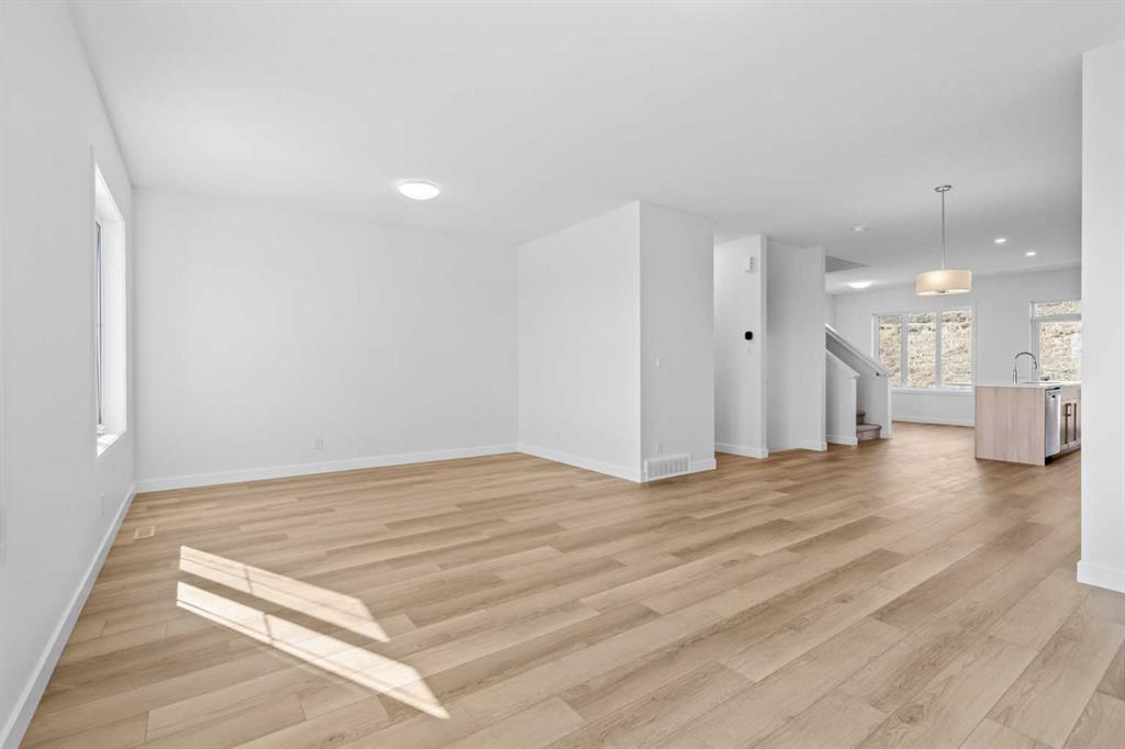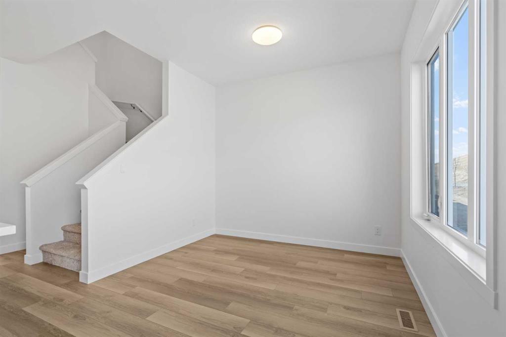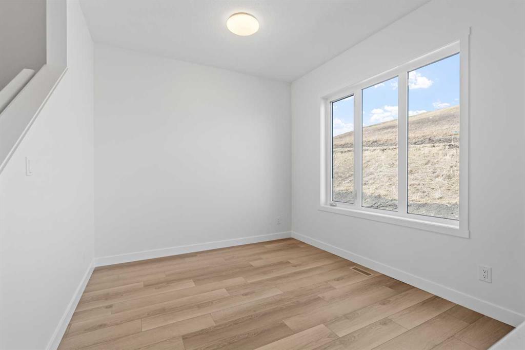 NEW BUILD SEMI-DETACHED | OVERSIZED SINGLE GARAGE | 3 BED / 2.5 BATH / 1764 SQ FT | WEST-FACING BACKYARD | IMMEDIATE POSSESSION – Welcome to this beautifully designed semi-detached duplex by Minto Communities, an award-winning Canadian builder, located in Wildflower, proudly voted Best New Community in Canada (2025). This vibrant, master-planned community in Airdrie is designed with lifestyle and connection in mind, offering an exciting mix of home styles in a neighbourhood built to grow with you. Finished in a charming traditional farmhouse elevation, this spacious home offers a thoughtfully planned layout ideal for modern family living. The main floor is designed for both everyday comfort and entertaining. The kitchen is positioned at the back of the home and features a central island, stainless steel appliances, and gorgeous modern finishes, with a bright breakfast nook just off the kitchen overlooking the west-facing backyard. Moving toward the centre of the home, you’ll find a dedicated dining area, while the large, light-filled living room anchors the front of the home. A convenient half bath and storage closet complete this level. Upstairs, the spacious primary bedroom easily accommodates a king-sized bed and includes a walk-in closet and a private 4-piece ensuite. Two additional well-sized bedrooms share this floor, one with a walk-in closet and the other featuring a sliding-door closet. A second 4-piece bathroom and a large, functional laundry room round out the upper level. The ground level welcomes you with a beautiful entryway that leads to the rest of the home and an undeveloped space that offers flexibility for future development. This level also includes additional storage space, a mechanical room, and direct access to the oversized single attached garage. A large driveway provides ample parking, adding everyday convenience. Residents of Wildflower enjoy exclusive access to The Hillside Hub, a standout amenity centre featuring Airdrie’s first outdoor pool, a hot tub, an open-air sports court, and a variety of shared indoor and outdoor spaces designed for gathering, recreation, or quiet retreat. With nearby parks, pathways, amenities, and easy access to major routes, Wildflower delivers a truly well-rounded lifestyle. Combining award-winning community planning, modern design, and immediate possession, this is an outstanding opportunity to own a stylish new home in one of Canada’s most celebrated communities. Don’t miss your chance to make Wildflower home! Book your visit today!