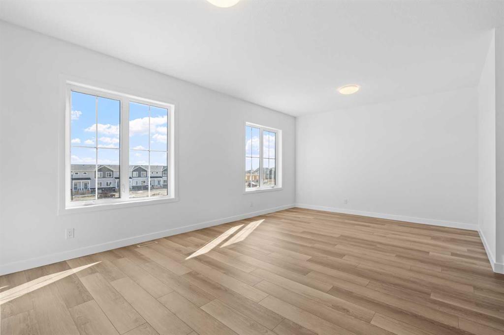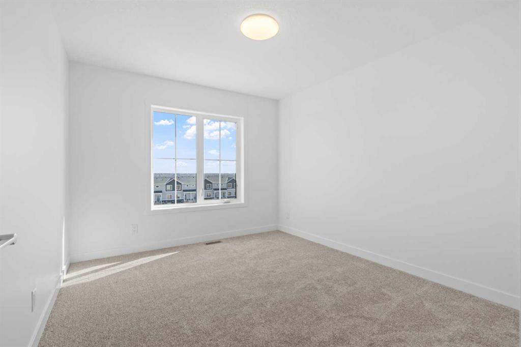 NEW BUILD SEMI-DETACHED | OVERSIZED SINGLE GARAGE | 3 BED / 2.5 BATH / 1764 SQ FT | WEST-FACING BACKYARD | IMMEDIATE POSSESSION – Welcome to this beautifully designed semi-detached duplex by Minto Communities, an award-winning Canadian builder, located in Wildflower, proudly voted Best New Community in Canada (2025). This vibrant, master-planned community in Airdrie is designed with lifestyle and connection in mind, offering an exciting mix of home styles in a neighbourhood built to grow with you. Finished in a charming traditional farmhouse elevation, this spacious home offers a thoughtfully planned layout ideal for modern family living. The main floor is designed for both everyday comfort and entertaining. The kitchen is positioned at the back of the home and features a central island, stainless steel appliances, and gorgeous modern finishes, with a bright breakfast nook just off the kitchen overlooking the west-facing backyard. Moving toward the centre of the home, you’ll find a dedicated dining area, while the large, light-filled living room anchors the front of the home. A convenient half bath and storage closet complete this level. Upstairs, the spacious primary bedroom easily accommodates a king-sized bed and includes a walk-in closet and a private 4-piece ensuite. Two additional well-sized bedrooms share this floor, one with a walk-in closet and the other featuring a sliding-door closet. A second 4-piece bathroom and a large, functional laundry room round out the upper level. The ground level welcomes you with a beautiful entryway that leads to the rest of the home and an undeveloped space that offers flexibility for future development. This level also includes additional storage space, a mechanical room, and direct access to the oversized single attached garage. A large driveway provides ample parking, adding everyday convenience. Residents of Wildflower enjoy exclusive access to The Hillside Hub, a standout amenity centre featuring Airdrie’s first outdoor pool, a hot tub, an open-air sports court, and a variety of shared indoor and outdoor spaces designed for gathering, recreation, or quiet retreat. With nearby parks, pathways, amenities, and easy access to major routes, Wildflower delivers a truly well-rounded lifestyle. Combining award-winning community planning, modern design, and immediate possession, this is an outstanding opportunity to own a stylish new home in one of Canada’s most celebrated communities. Don’t miss your chance to make Wildflower home! Book your visit today!