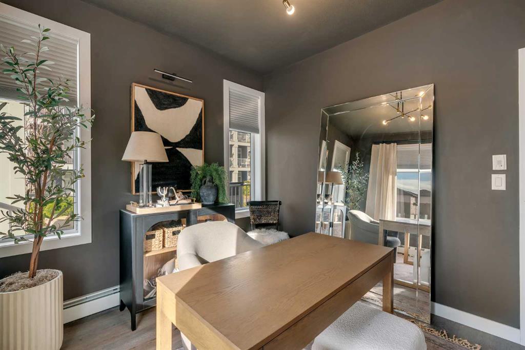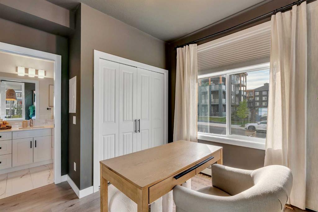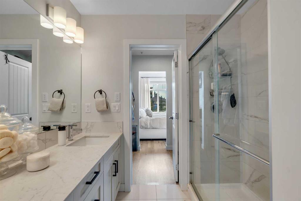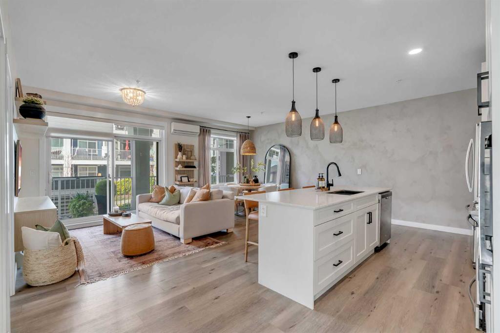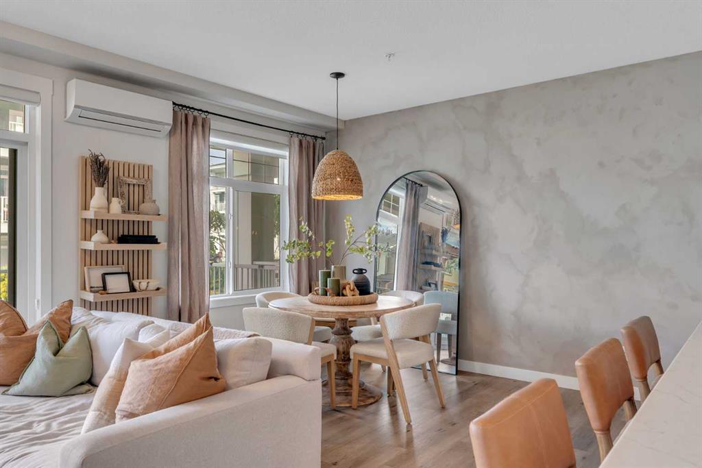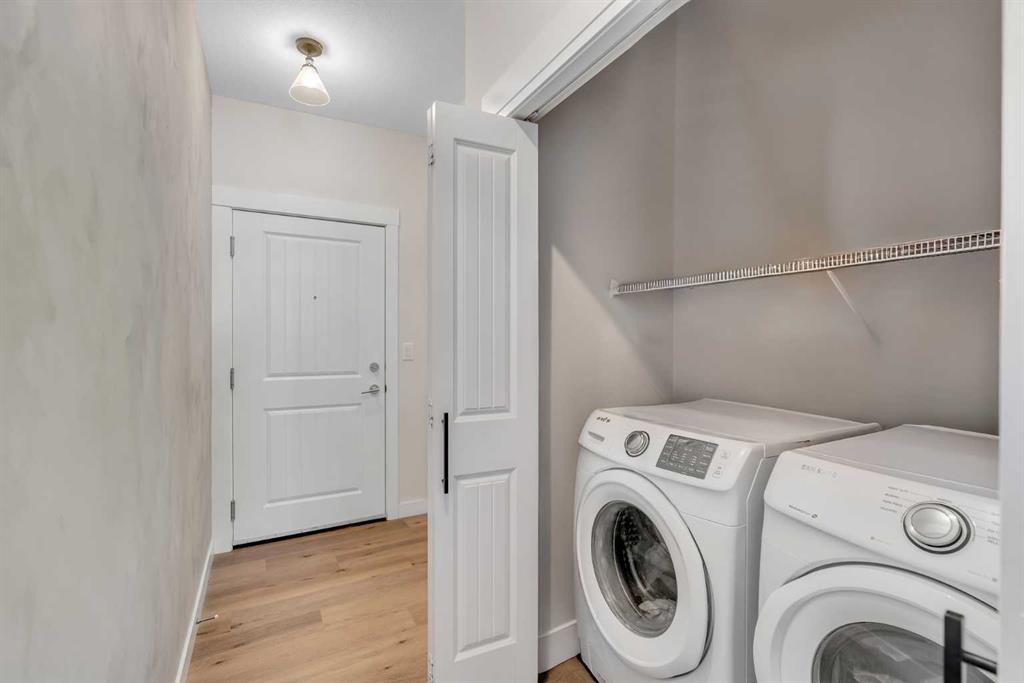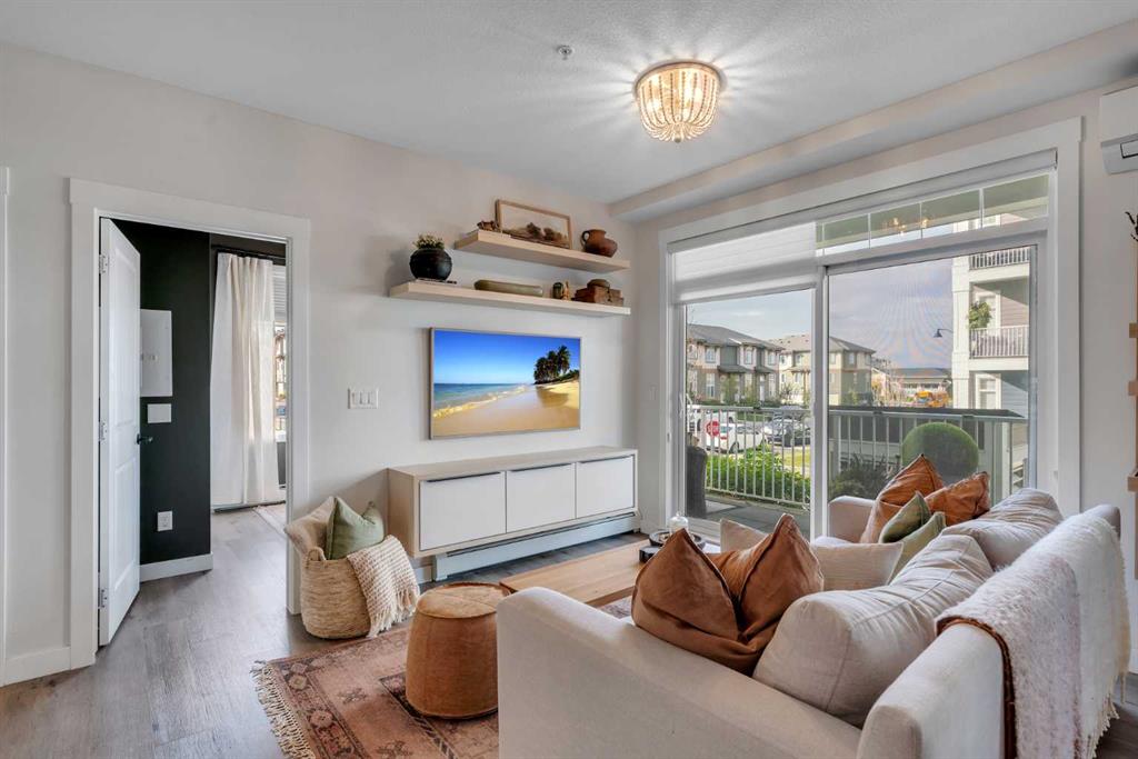 Welcome to 114, 200 Auburn Meadows Common SE. This spacious 2-bedroom, 2-bathroom corner unit offers 922 sq. ft. of stylish living space with soaring 9’ ceilings and upgraded luxury vinyl plank flooring throughout, including the bedrooms. The open-concept design seamlessly connects the living, dining, and kitchen areas, creating the perfect flow for both everyday living and entertaining. The kitchen is a true standout, featuring quartz countertops, stainless steel appliances (with a slide-in stove), full-height cabinetry, and upgraded lighting for a modern, high-end feel. The primary suite and secondary bedroom are both generously sized, with carefully designed touches like feature walls. Designer closets space by California Closets are found in the main entry closet to maximize organization and style. The second bathroom also features a designer accent wall for added character. The living room boasts a custom built-in wall unit under the TV, while the large windows allow for plenty of natural light. Step outside onto your spacious patio, which is slightly raised for privacy and not facing the parking lot — perfect for relaxing or entertaining. A BBQ gas line is already installed, and custom blinds and drapery add a touch of elegance. Practicality meets comfort with air conditioning, in-suite laundry, an assigned storage locker, and a titled underground parking stall. The building itself is pet-friendly (with board approval) and includes elevator access and visitor parking. Best of all, you’ll enjoy exclusive year-round lake access through the Auburn Bay HOA — from summer beach days to winter skating. Plus, this location puts you within walking distance of Auburn Station shopping, restaurants, transit, Seton YMCA, South Health Campus, and the upcoming Green Line LRT. Move-in ready and packed with upgrades, this condo offers an unbeatable blend of lifestyle, convenience, and value in one of Calgary’s most desirable communities.