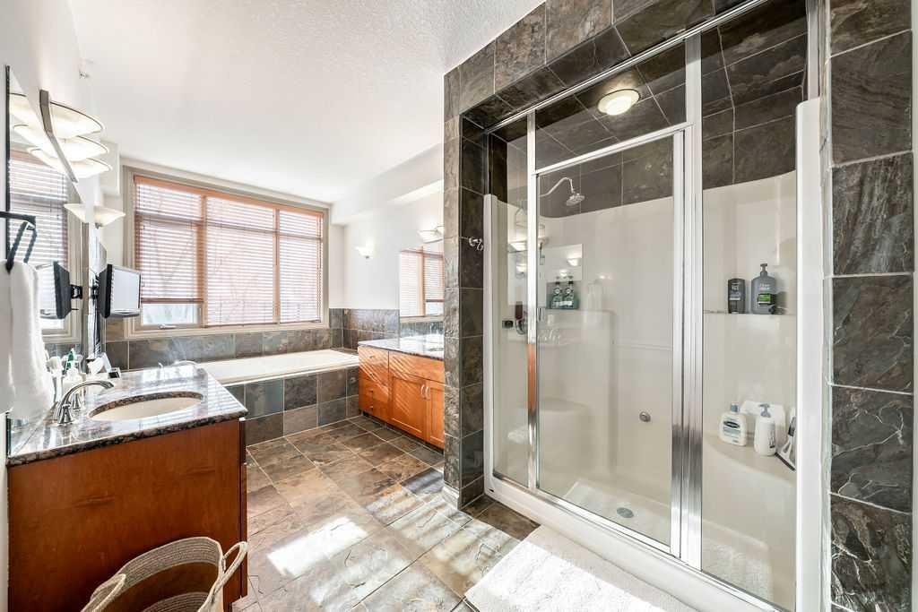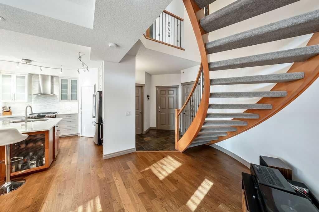 Inner-City Luxury. Parkside Views. Endless Possibilities. Imagine waking up in a home where the city’s vibrant heartbeat is just outside your door—yet your morning coffee comes with serene park views. This rare 2,377 sq. ft. two-storey stunner delivers exactly that. Set directly across from a lush park, community center, playground, and the General Hospital memorial, this property places you just steps from the Bow River pathway, LRT, downtown, restaurants, cafés, salons, medical care, and so much more. You won’t just live here—you’ll thrive here. Step inside and be greeted by a sweeping curved staircase that sets the tone for a home that’s anything but ordinary. Sunlight streams through expansive windows, spilling across freshly renovated floors and a sleek, modern kitchen. Four patios, two additional entrances, and a private office with its own exterior door make this home as flexible as it is beautiful. Upstairs, the owner’s suite is a personal retreat like no other—a massive primary bedroom, spa-inspired ensuite (steam shower included), and a walk-in closet so large it could be another bedroom. Laundry is attached to the closet, and the additional bedrooms are generous, bright, and one even features its own private deck. Your vehicle will be just as pampered as you are, with two titled underground heated parking stalls, a car wash bay, and an annual rental stall for extra convenience. Cyclists will love the secure bike room, and everyone will appreciate the impeccable care and security maintained by a first-class condominium corporation. This isn’t just a home—it’s a lifestyle. Opportunities like this don’t come often. Call your REALTOR® today and experience it for yourself.