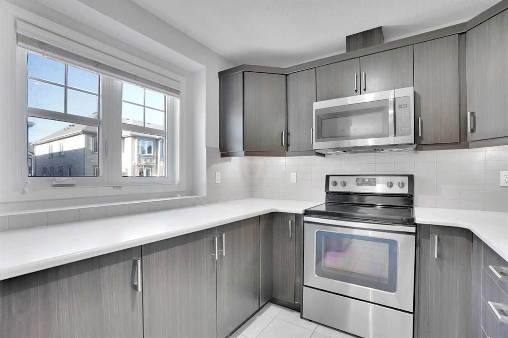 IMMEDIATE POSSESSION!!! ONLINE 3D VIRTUAL TOUR! LOW CONDO FEE! HIGHLY MAINTAINED UNIT| Welcome to this gorgeous 2-bedroom townhouse in mint condition, located in the highly sought-after community of Cityscape NE. This beautiful home features two spacious bedrooms, including a primary suite with a private ensuite bathroom and walk-in closet, plus an additional full bathroom and a convenient half bath. The upper level laundry adds to the home’s functionality. The main level offers a bright and open living room, a dining area, and a spacious U-shaped kitchen with upgraded stainless steel appliances and modern window coverings. Enjoy outdoor relaxation and summer BBQs on the balcony equipped with a gas line. The home also includes a single attached garage and a welcoming front hallway at the entrance. Don’t miss this incredible opportunity to own a stylish and well-maintained townhouse in one of the most desirable communities of NE Calgary — Cityscape!