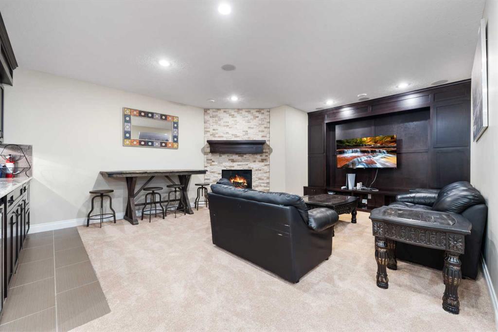Looking for a home that has the “wow” factor the moment you step inside? This former show home in Okotoks’ highly desirable Air Ranch community delivers exactly that—and so much more. With 5 bedrooms, 3.5 bathrooms, and nearly every upgrade you could ask for, this property backs directly onto greenspace, offering a unique setting you won’t find anywhere else. It’s a rare combination of refined design and everyday comfort, all wrapped up in one incredible package. From the moment you walk in, the grand foyer makes an impression with 18’ ceilings, a sweeping spiral staircase, and natural light that fills the main floor. The layout is built for both entertaining and family living. The kitchen is every chef’s dream—featuring a Wolf gas range, Viking fridge, custom Hammersmith hood fan, and a convenient water filtration/softener system. Rich cabinetry runs floor-to-ceiling, paired with granite counters, a large island, and a walk-in pantry to keep everything organized. Throughout the main level, you’ll notice thoughtful details that set this home apart. A built-in audio system lets you enjoy music in every room. The office, tucked behind distinctive arched French doors, provides a quiet space for work or study. Even the laundry room has been elevated with granite counters to match the home’s cohesive, upscale feel. Upstairs, three generously sized bedrooms and two full bathrooms provide plenty of space for family and guests. The primary suite is the highlight—a true retreat with room for a king-sized bed and private seating area. The 5-piece ensuite feels like a spa with a granite double vanity, corner soaker tub, walk-in tiled shower, and expansive walk-in closet. The fully finished lower level is where this home really shines. With two additional bedrooms, a 3-piece bath featuring a steam shower, and a large family room complete with a cozy gas fireplace and built-in entertainment centre, there’s space for everyone. A granite-topped wet bar with sink, wine fridge, and microwave makes it easy to entertain or kick back for movie nights. You’ll also find a large finished storage area to keep everything neatly tucked away. Car enthusiasts or families with multiple vehicles will appreciate the massive heated garage, designed with both function and space in mind. Outdoors, the lifestyle continues with a screened-in covered sunroom off the kitchen eating nook, leading to a stone patio with a built-in fireplace and additional gas lines ready for your BBQ & sunroom. Surrounded by mature trees, Gemstone lights for year-round curb appeal, and serviced by an underground sprinkler system, the yard is both private and low-maintenance. Central AC adds comfort through the summer months, so you’ll enjoy this home year-round. Air Ranch is one of Okotoks’ most distinctive communities, known for its quiet streets, beautiful homes, and unique aviation history. If you’re after a property that checks every box—style, function, and location—this home has it all. Come take a look for yourself!