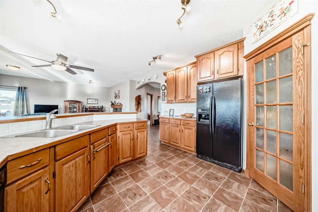 A striking two-way, see-through gas fireplace creates warmth and ambiance between the living room and adjacent den/office. The functional walk-through pantry connects to a well-appointed laundry room with sink and vanity and provides convenient access to the oversized double & 1/2 attached garage. Most garages will barely hold 2 vehicles. This one will do the job and have space left over. Soaring ceilings welcome you at the front entry, complemented by a split oak staircase leading upstairs. One wing hosts three generously (Huge) sized bedrooms, while the opposite side features a spacious bonus room designed as a home theatre with blackout window coverings and built-in speaker wiring. Custom storage systems enhance the primary walk-in closet and an additional bedroom. The primary suite easily accommodates a king-size bed and sitting area and is complete with a luxurious five-piece ensuite featuring a soaker tub and walk-in shower. You should see the view from all 3 sides of the primary bedroom.