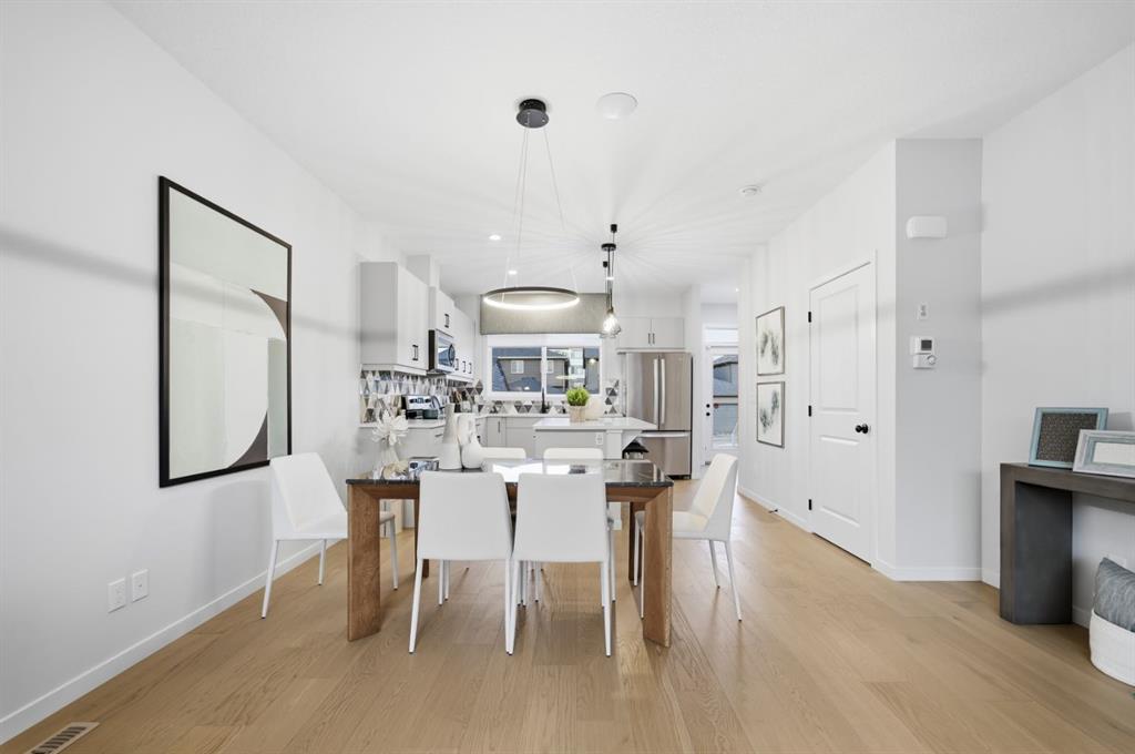 OPEN HOUSE SAT & SUN 1-3PM Welcome to this immaculate TRICO FORMER SHOW HOME in the highly desirable Wolf Willow community! This pristine 3-bedroom, 2.5-bathroom home has never been lived in , Boasting over $45,000 in builder upgrades with tasteful, high-end finishes throughout, this home features air conditioning for year-round comfort, professionally landscaped yard with mature plantings, and a beautiful deck perfect for entertaining. Every room showcases thoughtfully designed accent walls adding character and style, while a convenient office desk nook on the second-floor hallway maximizes every inch of space. Ideally situated steps away from the dog park, this home is perfect for pet owners and families alike. Wolf Willow has long been cherished for its natural beauty, diverse fish and wildlife, and abundant recreational opportunities. With its contemporary design, numerous amenities, and strong connection to the river, Wolf Willow brings the lifestyle and beauty of the Bow River Valley right to your doorstep. This is a rare opportunity to own a designer showhome.