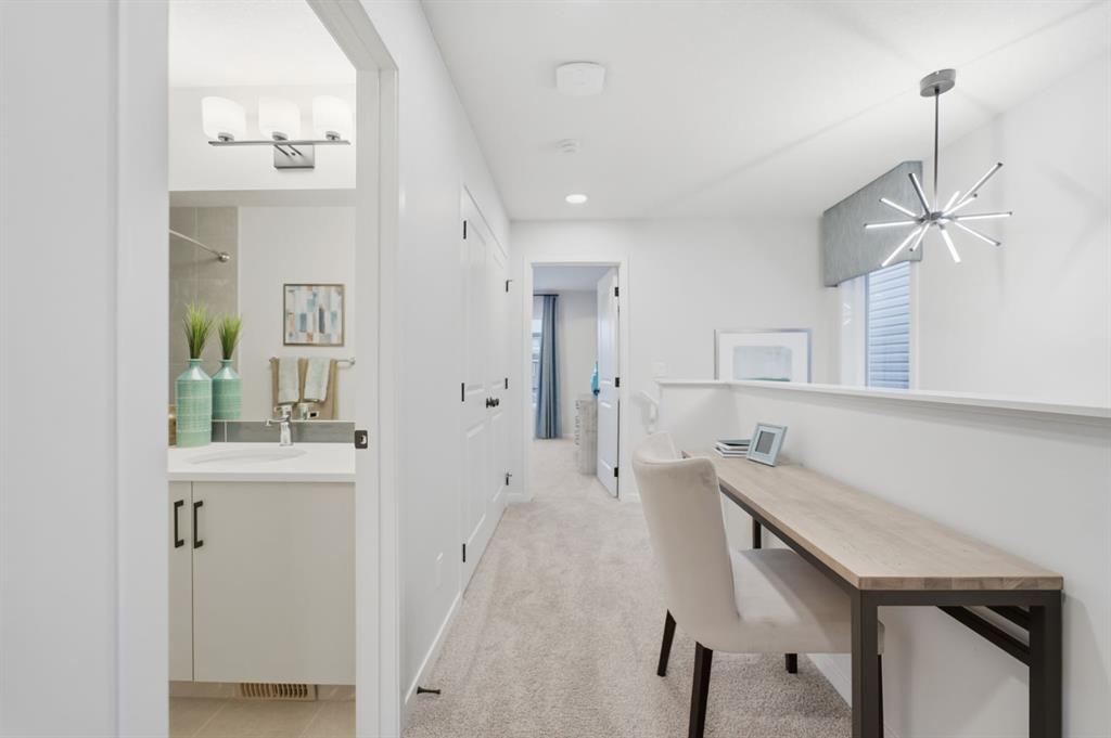 Welcome to this immaculate TRICO FORMER SHOW HOME in the highly desirable Wolf Willow community! This pristine 3-bedroom, 2.5-bathroom home has never been lived in Boasting over $45,000 in builder upgrades with tasteful, high-end finishes throughout, this home features air conditioning for year-round comfort, professionally landscaped yard with mature plantings, and a beautiful deck perfect for entertaining. DOUBLE CAR GARAGE IS ALSO INCLUDED IN THE PRICE BUT WILL BE BUILT IN THE SPRING TIME. Every room showcases thoughtfully designed accent walls adding character and style, while a convenient office desk nook on the second-floor hallway maximizes every inch of space. Ideally situated steps away from the dog park, this home is perfect for pet owners and families alike. Wolf Willow has long been cherished for its natural beauty, diverse fish and wildlife, and abundant recreational opportunities. With its contemporary design, numerous amenities, and strong connection to the river, Wolf Willow brings the lifestyle and beauty of the Bow River Valley right to your doorstep. This is a rare opportunity to own a designer showhome.