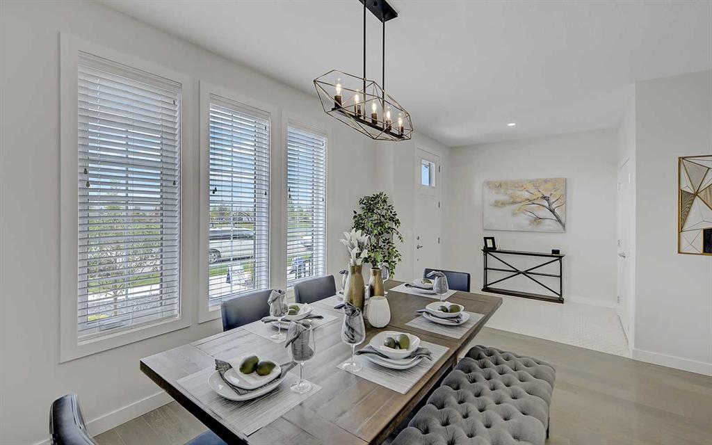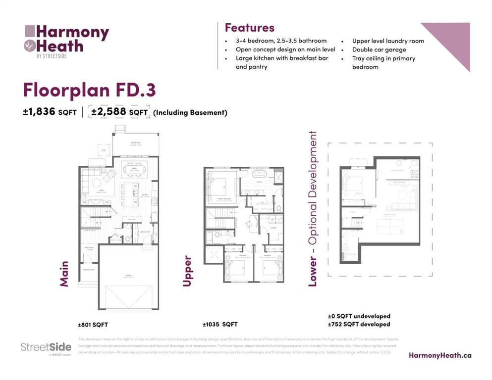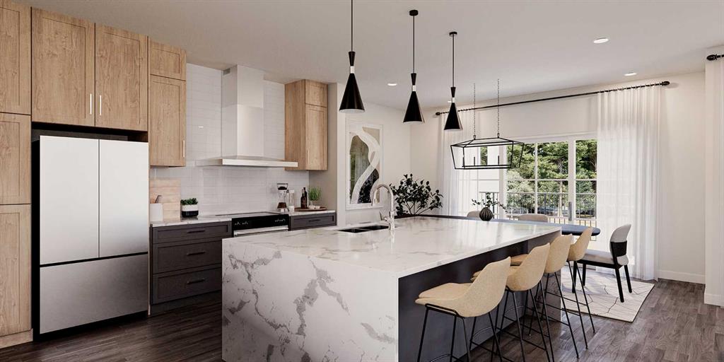 Welcome to 1140 in Harmony Heath —move-in ready is approaching, and new photos are coming. Your ideal home for your family to grow, thrive, and create lifelong memories. Designed with every family member in mind, this home offers a blend of comfort, style, and convenience that’s hard to beat. This interior home includes a fully developed basement, a double attached garage, and a walk-through mudroom featuring handy pantry shelving and lockers. The expansive 33′ driveway ensures plenty of room for your vehicles. Step outside to a 16’x8’ covered deck and a large, sodded backyard enclosed by a privacy fence, seamlessly blending into developer-installed wrought iron fencing along the greenspace. Inside, the kitchen is a chef’s dream with full-height dual-tone cabinets in dark grey and an oak finish, complete with Samsung appliances and a gas line. The adjacent, spacious living room is perfect for family gatherings. The basement, with 9′ ceilings, has plenty of space for a TV lounge and room for air hockey or a ping pong table. The upper-level primary suite is your peaceful sanctuary with beautiful green-spaceviews, a freestanding bathtub, and a luxurious 10mm glass shower. Laundry days are more manageable with an upgraded laundry package: quartz counter, + upper cabinet with hanging rod above the side-by-side machines to tackle those everyday chores. Living in Harmony Heath means benefiting from top-rated schools with convenient bus pick-up and a community filled with activities: an adventure park, skate park, climbing wall, and over 27 km of paved pathways. Plus, enjoy water activities at both lakes and an off-leash dog park. Please come to our brand new Show Home at 1176 Sailfin Heath to view a similar home and choose a community that supports the balance you’ve always dreamed of. Welcome to your next adventure. 45 Minutes East of Canmore and 15 Minutes west of Calgary.