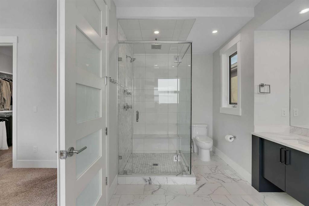The main floor flows effortlessly with it’s 10 foot ceilings and the ideal space for hosting friends before heading out or staying in when the mood calls for it. Upstairs, the primary suite gives you a proper place to recharge, complete with a sleek 5-piece ensuite with soaker tub, while two additional bedrooms and additional flex space perfect as a home office.